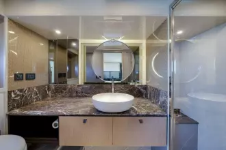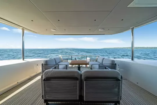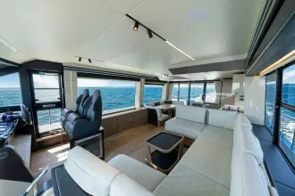 The 2023 Absolute 60 Fly Prisma represents the latest evolution in Absolute Yachts design. Built for serious cruising and entertaining, this yacht combines sweeping visibility, modular outdoor spaces, and a full beam forward master suite with private access. Loaded with over $360,000 in factory and dealer-installed options, she is the most complete and turnkey example available today. Recently waxed, detailed, and bottom painted.