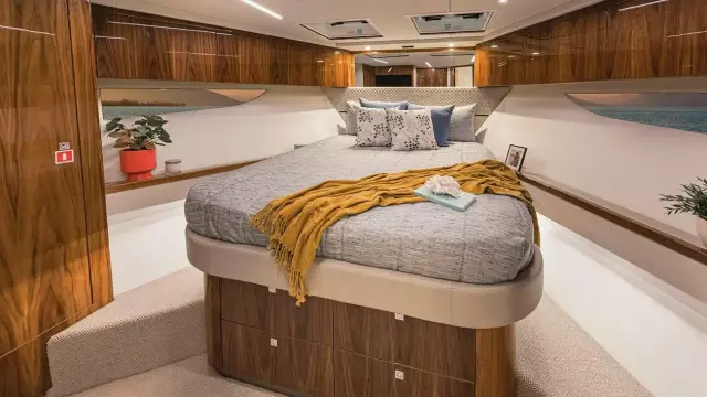 The Riviera design team in collaboration with 4D designs have created this unique motor yacht. And everything about Riviera’s 645 SUV is impressive. The 645 has the largest water sports and fishing cockpit of all the models in our SUV Collection. When the alfresco deck opens up to our most spacious SUV saloon and galley, the single-level living plan is spectacular. And of course the 645 offers our largest SUV accommodation deck with a full-beam master stateroom. Choose three or four staterooms with three bathrooms plus an optional lower lounge and crew cabin, utility room or additional accommodation.
