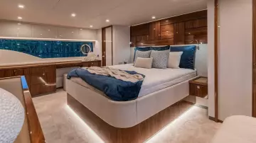Perfect for a long-range adventure or a weekend away; with a choice of 3 or 4 staterooms and three bathrooms, a crew cabin or utility laundry, a full-height walk-through engine room and an impressive tender garage devoted to water sports.