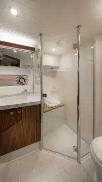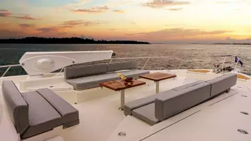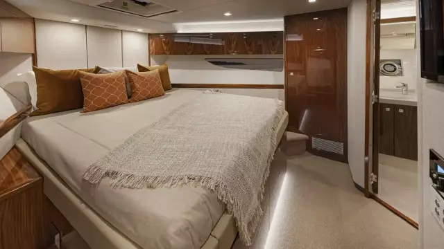 Features fabulous foredeck entertainment area and four-sided enclosed flybridge with internal stairs. Enjoy the luxury of an optional crew cabin or utility space and the surety of wide and deep side decks. Your choice of three or four magnificent staterooms and four bathroom designs.