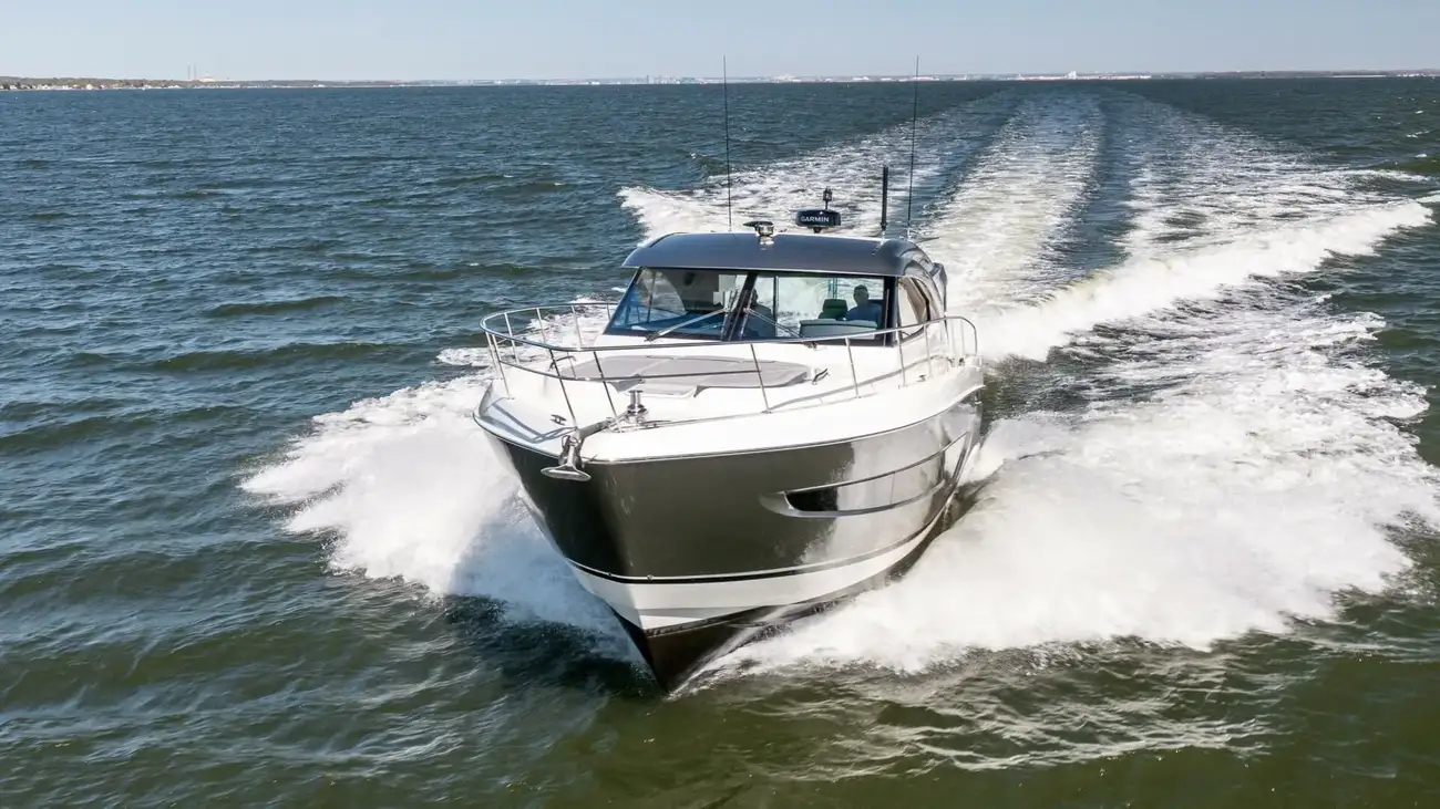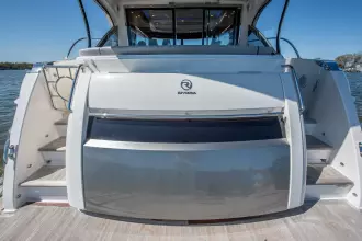 With three true staterooms, two dry heads, and a large storage garage, the Riviera 4600 feels much larger than any other cruiser in its class. The Platinum Package and paint job give the boat a modern style that rivals even the sleekest of boats. Riviera prioritizes superb build quality, onboard comfort, and a solid ride, creating a user-friendly experience compared to European-built boats. Riviera is designed with the owner operator in mind, making it more straightforward, accessible, and serviceable.