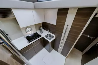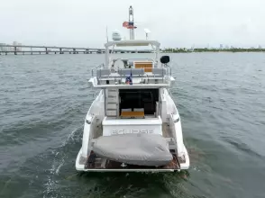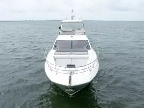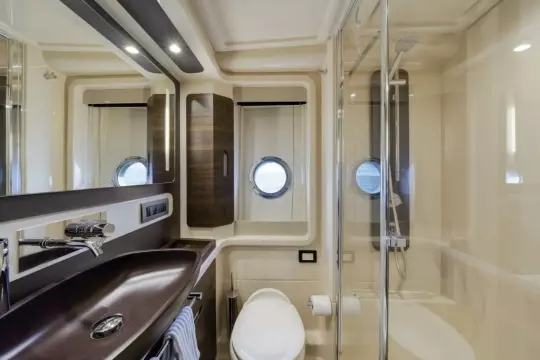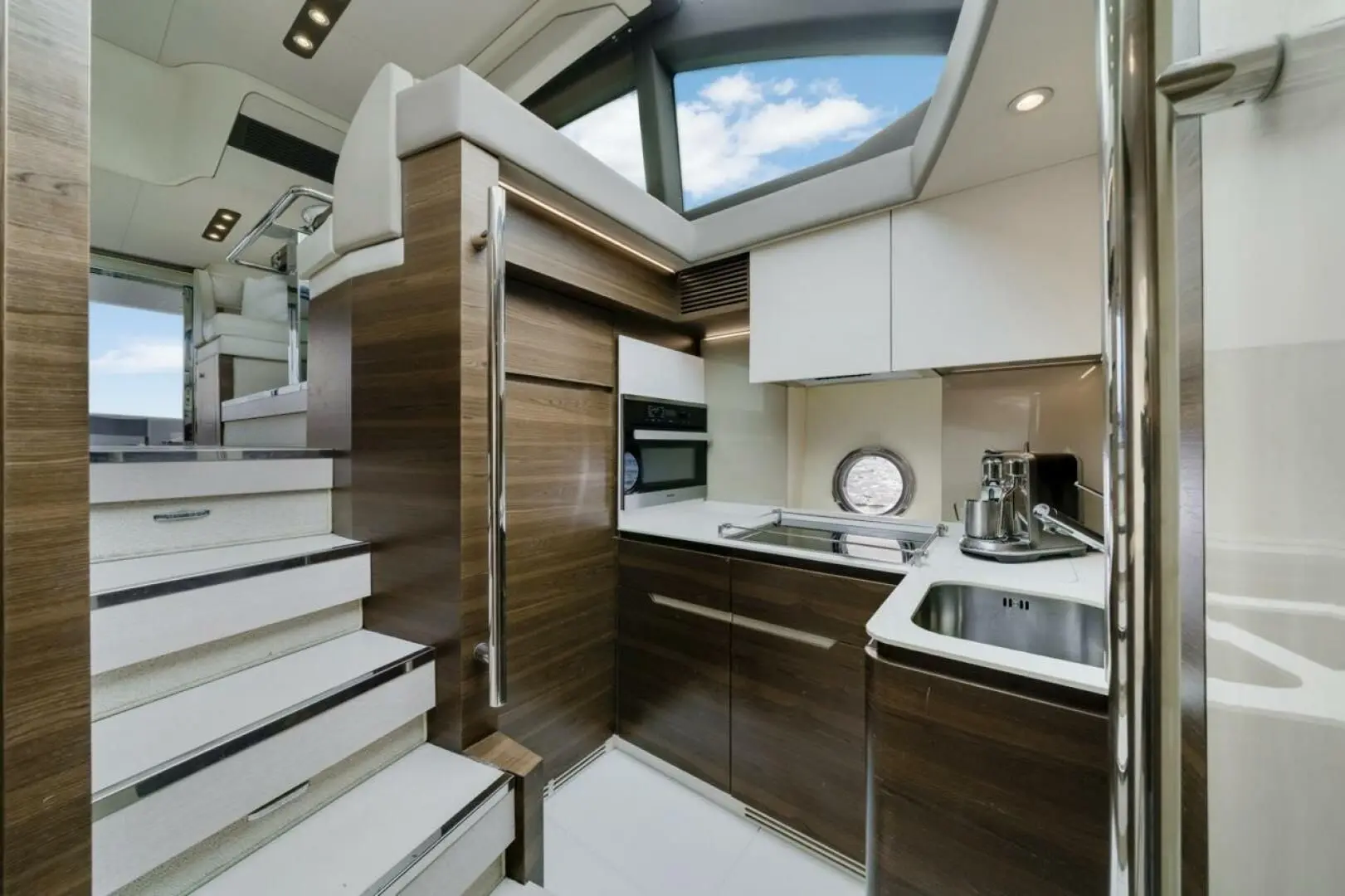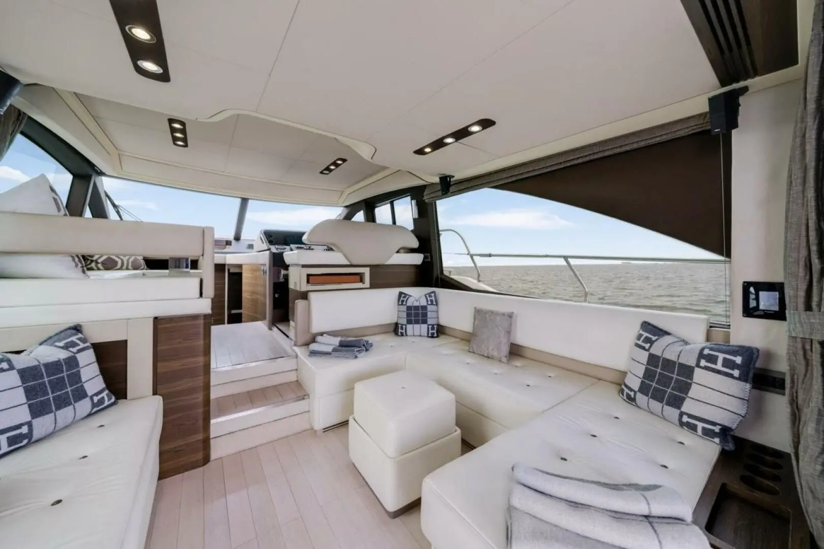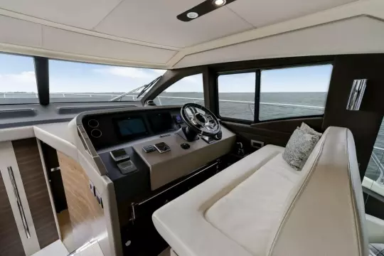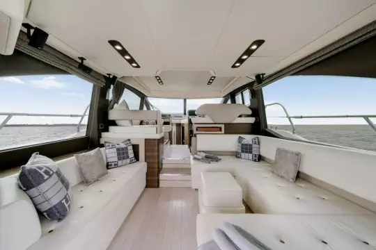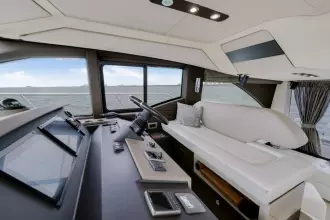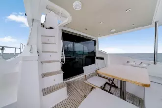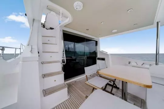 - Flybridge entertainment area with wet bar (Grill + Sink + Refrigerator)