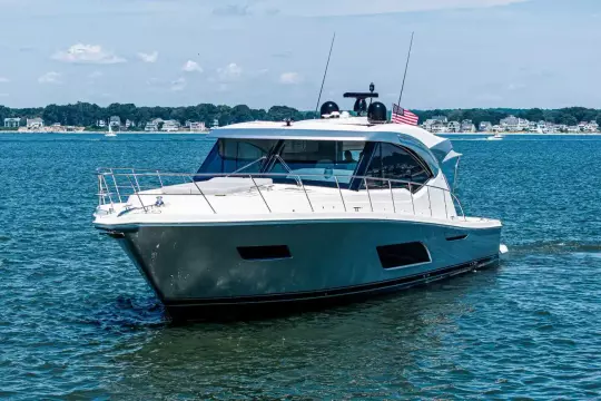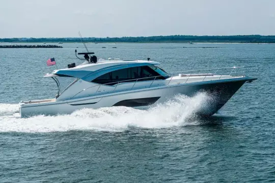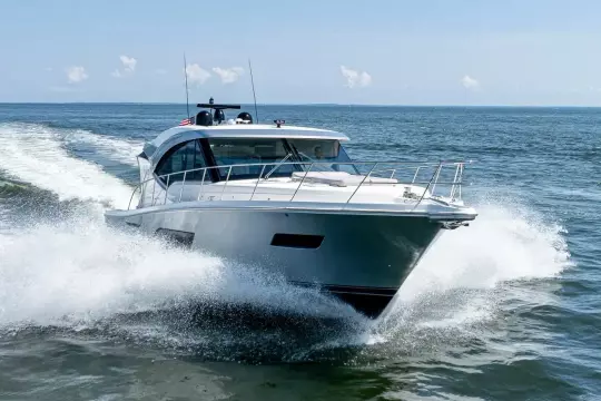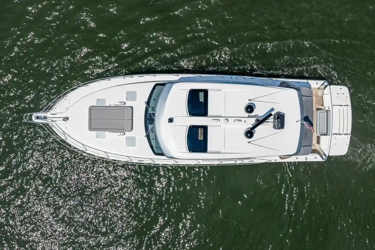 A rare find, the Riviera 575 SUV is a true hybrid – a bluewater boat that is as comfortable fishing or diving as it is cruising with family. True to name, the SUV can do it all, thanks in part to its large open cockpit, which can entertain a crowd, gear up divers, or fish a tournament. An outdoor mezzanine area with wet bar, aft galley, and three developed staterooms make the boat perfect for cruising as well, with plenty of bulk storage in the cockpit for paddleboards, bikes, etc. A phenomenally soft riding boat with extensive range, the 575 can go to more places, and in worse conditions, than most any other 60' boat.
