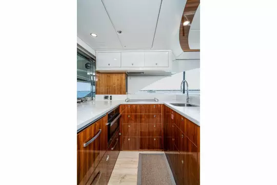 Built on Australia’s Gold Coast, all Riviera’s feature a three-quarter keel and are heavily constructed to combat the unrelenting conditions of Australian waters, making them deep-water boats that provide comfort in conditions where most brands cannot. Watertight bulkheads and redundant systems give peace of mind and allow the owner to trust the boat on a deeper level than most boats. All Rivieras feature opening windows wherever possible, plenty of storage, and plenty of refrigeration space which all translate very well here in the US market. Unlike European counterparts which are primarily built for crew, Riviera is built with the owner operator in mind, which makes them a much more straightforward, accessible, and serviceable boat than most.