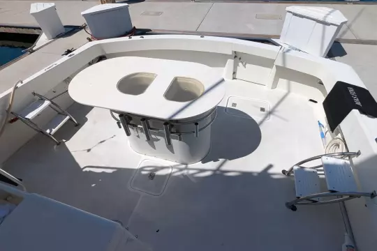 The Hatteras 55 Convertible is a classic sportfishing boat. It has a wide beam, providing plenty of space in the cockpit, and enough room inside for three staterooms, an up-galley, and a comfortable salon.