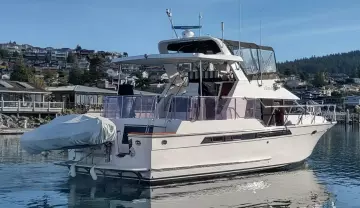The Ocean Alexander 44 Cockpit Motor Yacht is a popular model for all the right reasons; quality construction, functional two cabin layout and sensibly laid out systems for ease of maintenance. No wonder this design continues to be sought after by experienced boaters.
