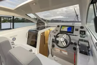 - Terrific foredeck access - Opening to Port of windshield gives access to a walkway to go to 3-person sunpad and to easily set up lines for docking, or anchoring. Easy for kids, dogs and everyone else to enjoy the views!