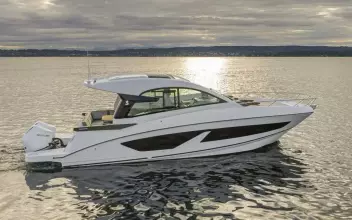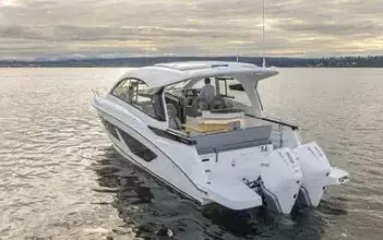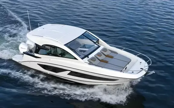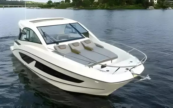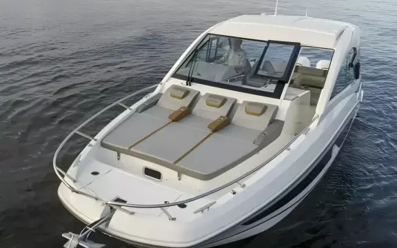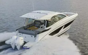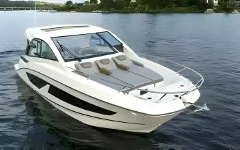 Streamlined and sporty, the Gran Turismo 32, designed and built in France, is the latest in Beneteau's line of express cruisers, and takes advantage of all that design knowledge. She has an inviting cockpit with large seating that can be turned into a sunpad, seats facing forward for 4 to sit by the driver, and great access to go forward to the foredeck area via a port-side walkway. Outdoor galley with electric BBQ, opening roof, sleeping for 4, a nice bathroom with separate shower are just a few of the other great features the Gran Turismo 32 offers.