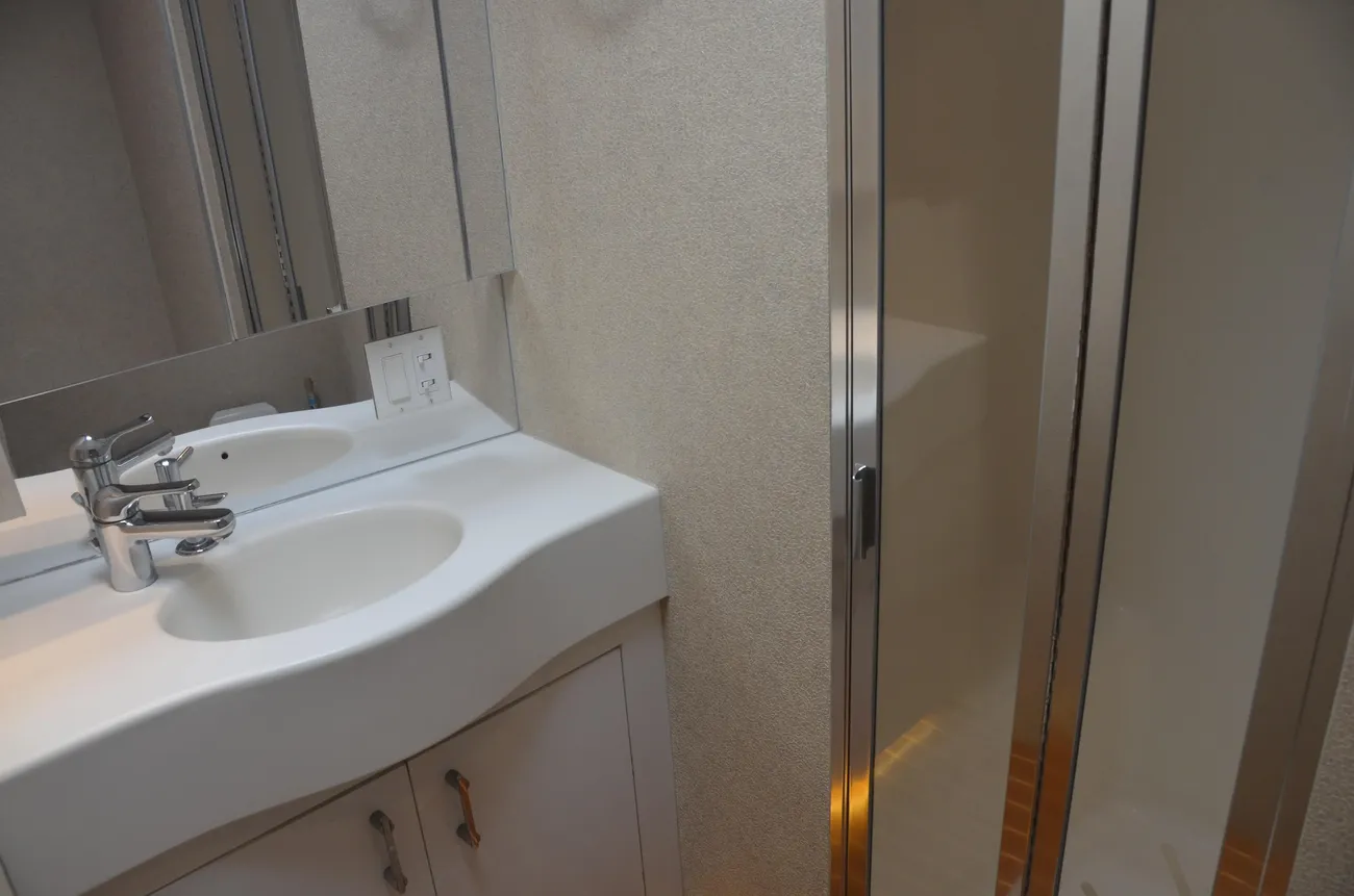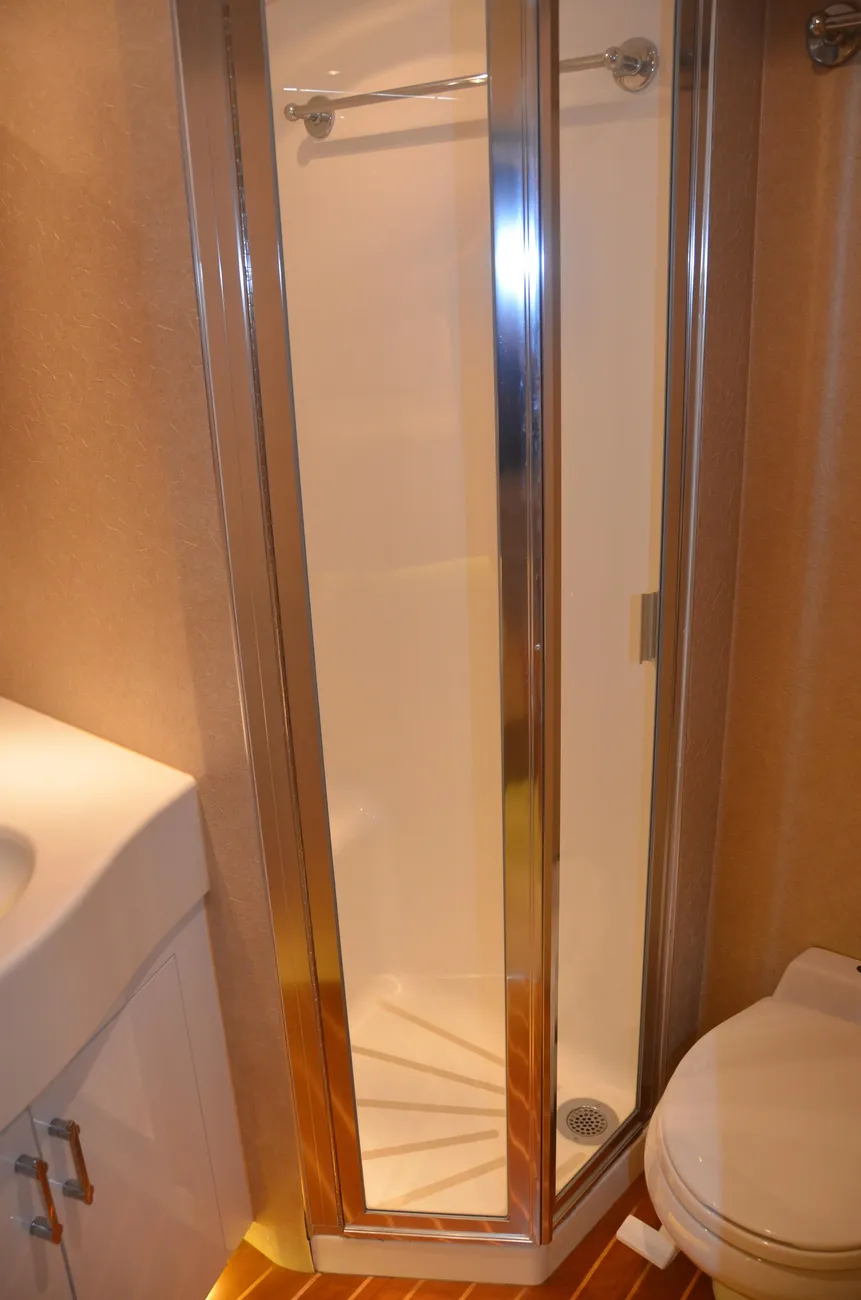 - Samsung 50” flat screen on mount that folds out for access to storage