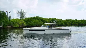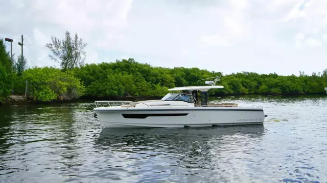 At just over 40 feet, the Tender 11 is Nimbus’ vision of the perfect day boat. She perfects easy living on the water, providing an innovative social environment for friends and family to gather and relax. This means a large lounge area with adjustable seating and dining configurations, multiple sun beds, outdoor galley for entertaining, gyro stabilization, vast storage for gear and water toys, and an impressive amount of deck space which allows for an overwhelming freedom of movement. With a wide range of engine options and thanks to a stepped hull design, you can cruise comfortably with speeds anywhere between 20 and 40 knots.