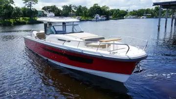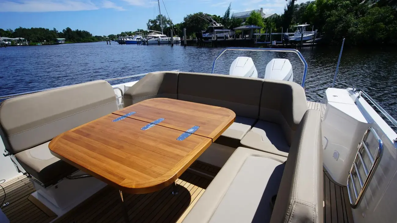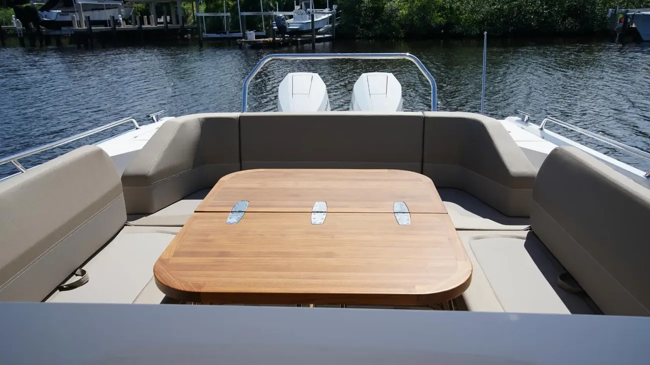 At just over 40 feet, the Tender 11 is Nimbus’ vision of the perfect day boat. She perfects easy living on the water, providing an innovative social environment for friends and family to gather and relax. This means a large lounge area with adjustable seating and dining configurations, multiple sun beds, an outdoor galley for entertaining, gyro stabilization, vast storage for gear and water toys, and an impressive amount of deck space, which allows for an overwhelming freedom of movement. With a wide range of engine options and thanks to a stepped hull design, you can cruise comfortably with speeds anywhere between 20 and 40 knots on board this Nimbus Tender 11. The T11 from Nimbus Boats is not just a spacious and stylish vessel; it was crafted for long-distance comfort. This 40-foot boat for sale excels in entertainment with its lounge area, which offers additional space for social gatherings on board and can adapt to any occasion. The Nimbus Tender 11 is an adaptable day boat that can be used for full days on the water spent with family and friends.