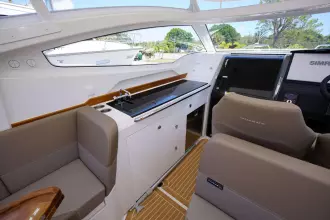 The Nimbus Weekender 9 is a 30-foot day cruiser that doubles as a weekender. She’s built to match your active lifestyle, ready for social gatherings on board and weekend excursions with friends and family. With amenities like the fully equipped outdoor galley and overnight accommodation for up to 4 people, you can extend your trip and stay on the water longer! She is meticulously designed with function and safety in mind so that whether you’re cruising the intracoastal or at the lake, she is just as comfortable.
