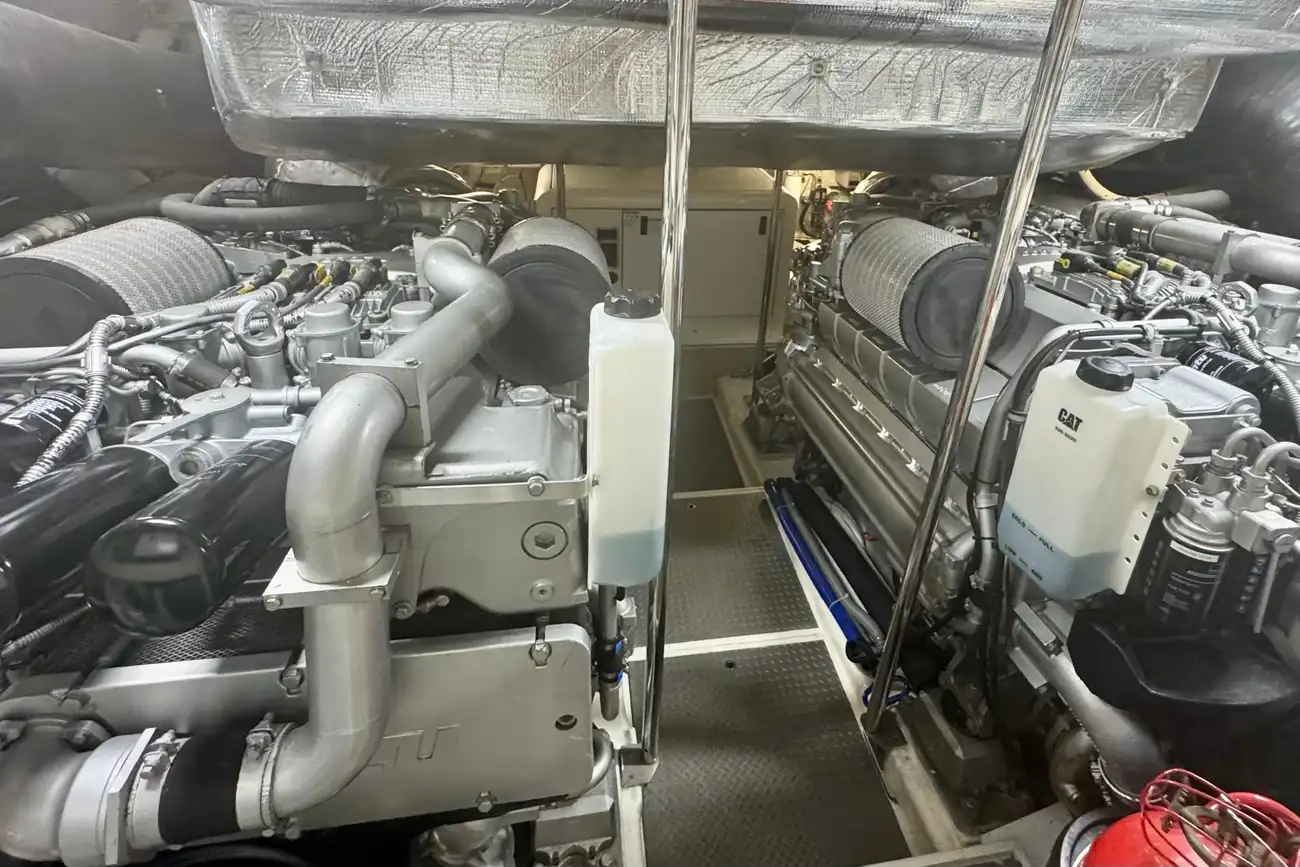 The Pershing 72 is built for speed and power, with twin MTU 16V 2000 M93 engines, providing 3646 horsepower collectively. These engines allow the yacht to reach a top speed of 45 knots, while the cruising speed is around 38 knots, making it one of the fastest yachts in its class.
