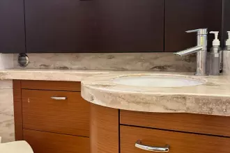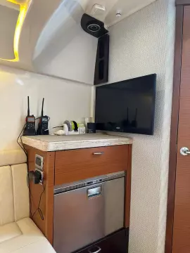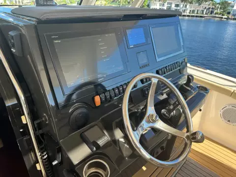 - Refrigerator on starboard side of helm, Stainless steel drawers on port side of helm console