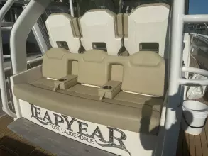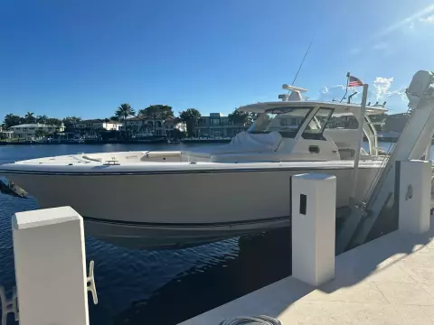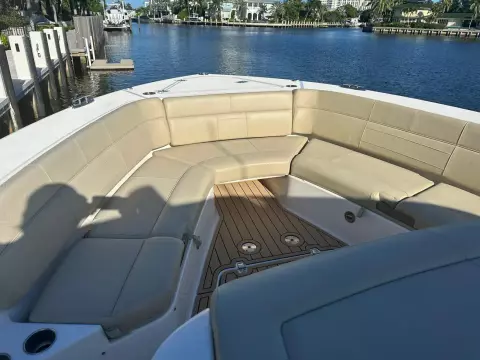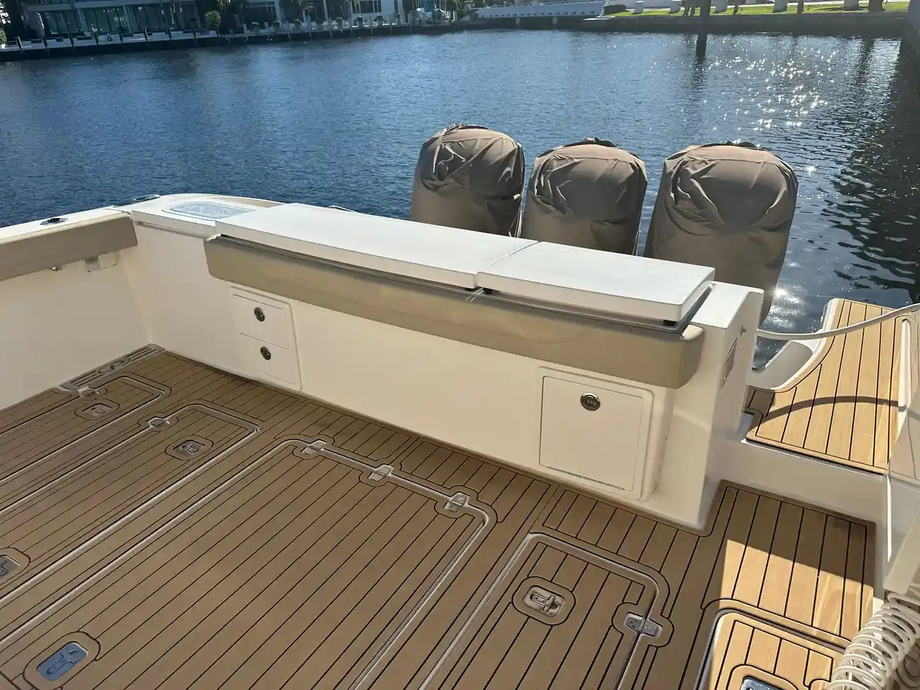 Elevate your boating experience with the 2018 Pursuit 408S "LEAP YEAR". Powered by triple Yamaha 350's, this vessel offers incredible performance. She comes equipped with a Seakeeper to ensure smooth and stable rides out on the water. The integrated rocket launcher enhances your fishing capabilities, making it a perfect choice for avid anglers. The underwater lights create a stunning ambiance for nighttime excursions. Whether you're entertaining friends or embarking on a weekend getaway, the 2018 Pursuit 408S "LEAP YEAR" combines style, comfort, and functionality seamlessly.