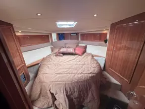 Steps down the companionway lead to the master stateroom to starboard with a private head, and across to port is the crew bunk room. Forward in the bow is the VIP suite with access to the guest head.
