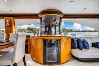 Powered by twin MTU 16V 2000 M90 motors producing 1,800 hp each, So What Who Cares can cruise in the mid 20 knots and reach a top speed of around 30 knots. She has been meticulously maintained by the same captain and marine engineer for the last 15 years and has received numerous updates over the years.
