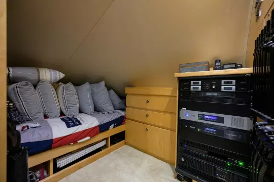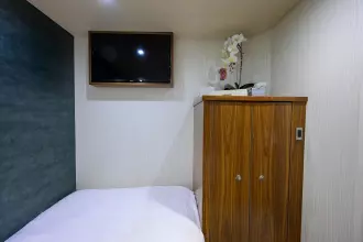 The private crew stateroom, with head and shower is accessed from the cockpit.