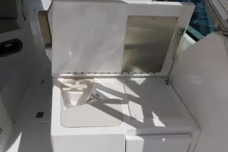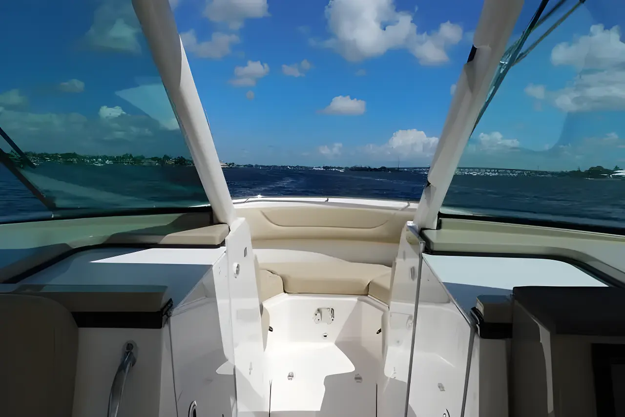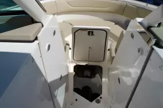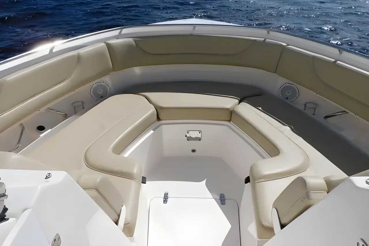 - Port and starboard forward coaming boxes with four (4) drink holders, grab rails, courtesy lights, storage keeper, port stereo remote, and speakers
