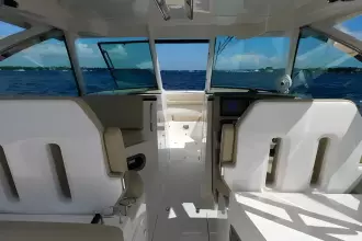- Molded forward bow seating with flip-down armrests and insulated storage below