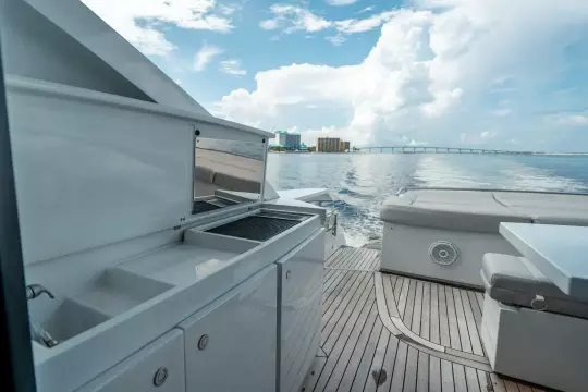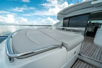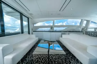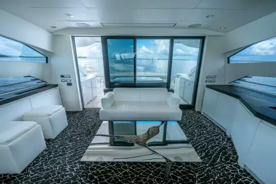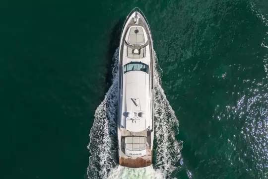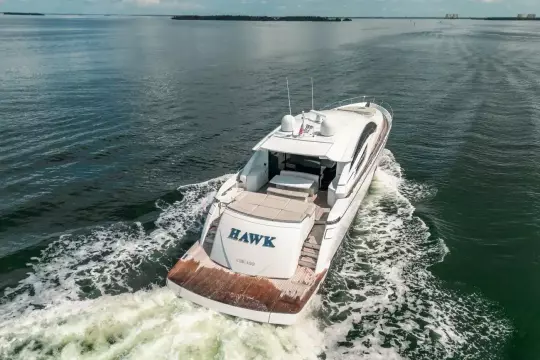 The 80' Pershing, HAWK, is a remarkable blend of speed, luxury, and Italian design, catering to those who appreciate both performance and comfort at sea.