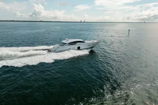 The 80' Pershing, HAWK, is an impressive luxury motor yacht, designed and built by the renowned Italian yacht manufacturer, Pershing, which is part of the Ferretti Group. It's known for its performance, sleek design, and luxurious amenities.