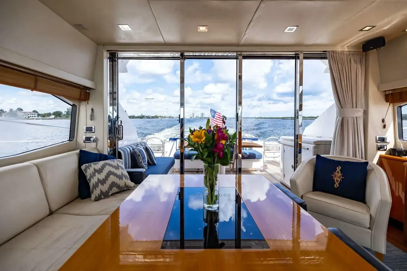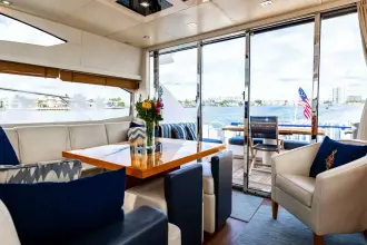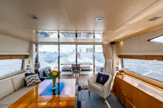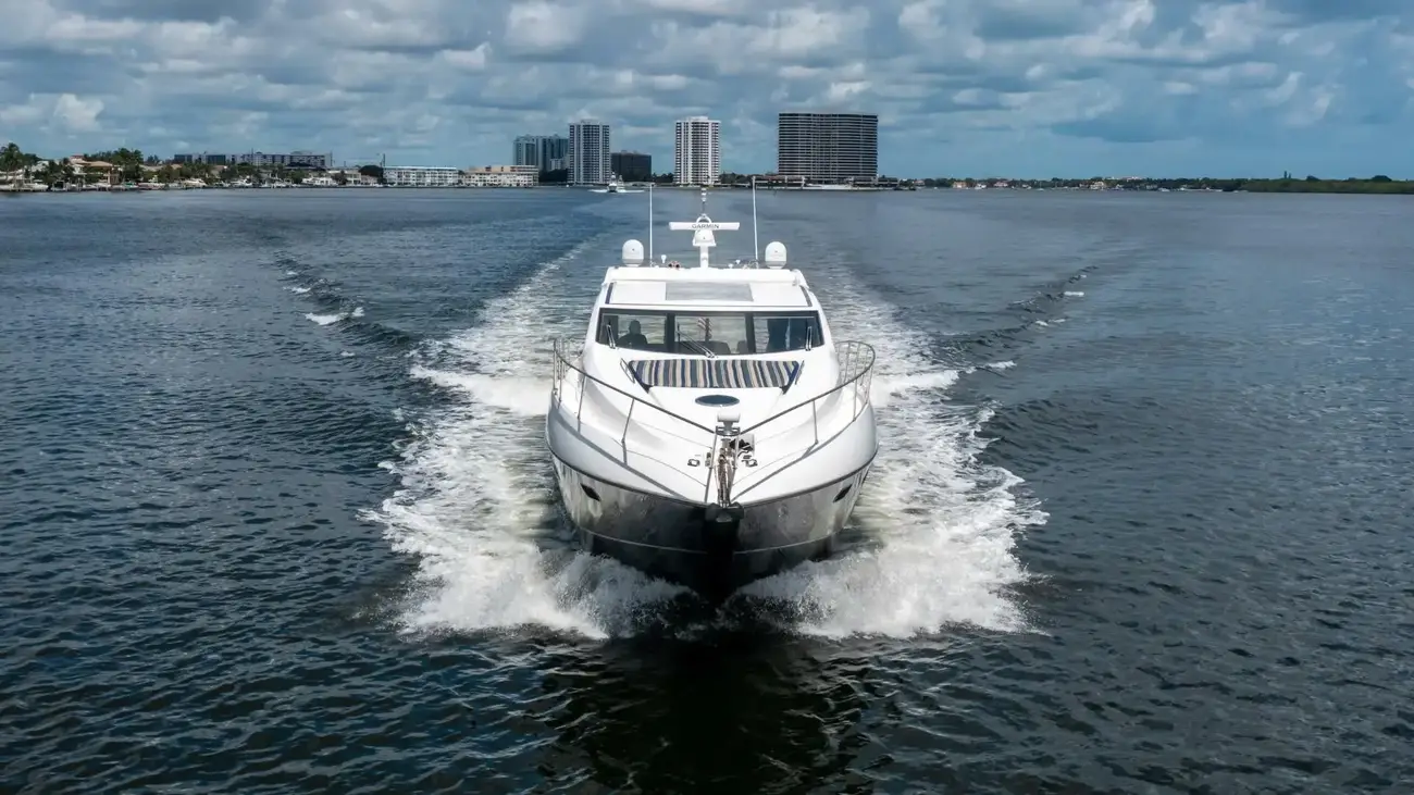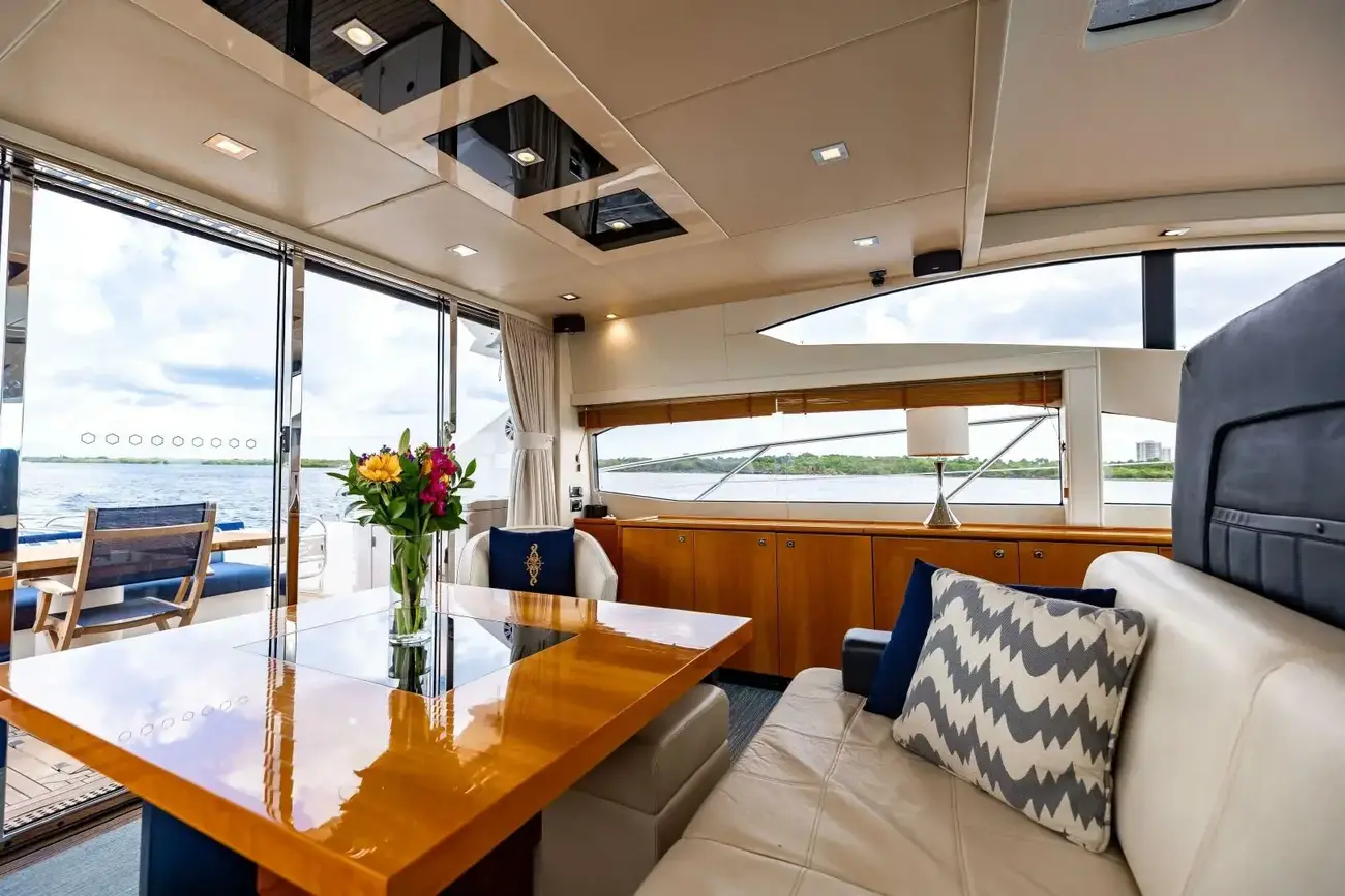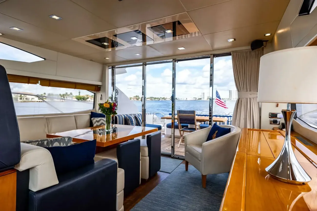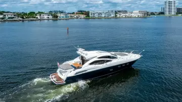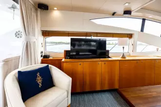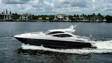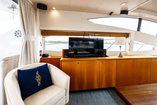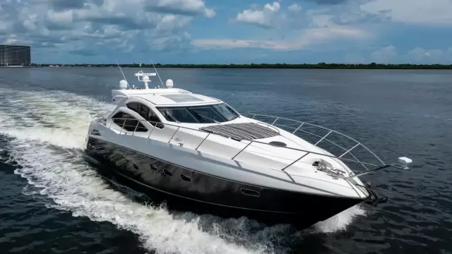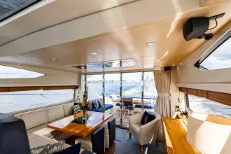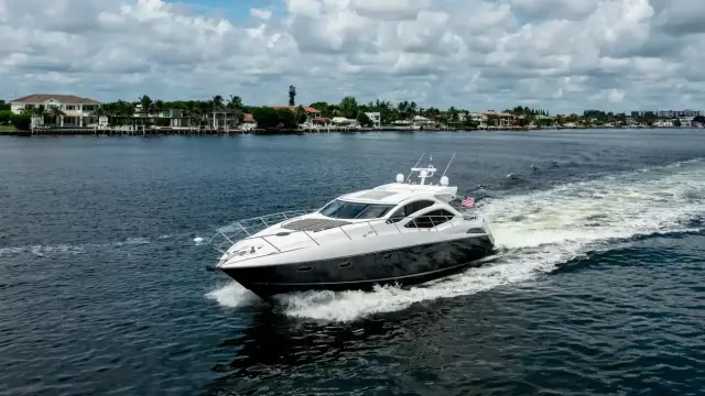 The 2010 Sunseeker Predator 64 is a sleek and powerful luxury yacht, equipped with twin MAN V10 1100 hp engines for impressive performance. Its modern design features a spacious interior with three beautifully appointed cabins, ideal for extended stays on the water. The yacht is fitted with new 2021 Garmin electronics, providing cutting-edge navigation and control. The open-plan layout is enhanced by a sunroof that brings in natural light and fresh air, while the glass doors at the rear can be opened flush to seamlessly connect the interior with the aft deck, creating an expansive, open feel.