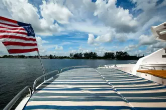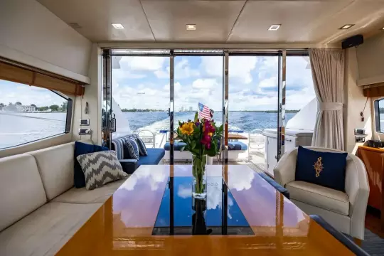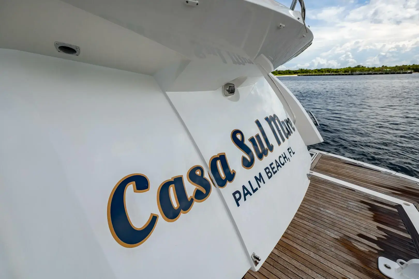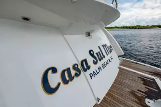 Step inside, and you'll find a luxurious salon with ample seating, a state-of-the-art entertainment center, and newly installed Garmin electronics at the helm, including autopilot and radar. Below deck, the galley is well-appointed with a full-size fridge, freezers, and a cooktop, while the guest accommodations feature a VIP suite, a bunk room, and a full-beam master suite with stunning port and starboard windows. Whether you're cruising, entertaining, or simply relaxing, CASA SUL MARE offers the perfect balance of elegance and practicality for all your adventures.