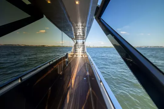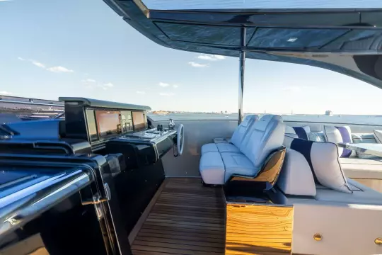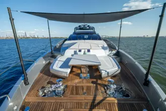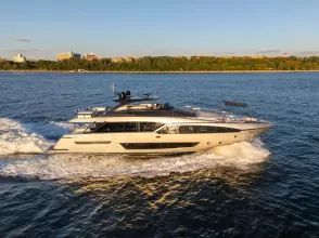 “This model Riva 90 Argo has surpassed my expectations in rough seas and overall clients level of comfort. The deep V hull design coupled with dual Seakeepers and hydraulic fin stabilization delivers an unexpected level of performance and comfort. 24 kn cruise delivers a very low decibel optimal running speed with little on no vibration compared to similar boats.”