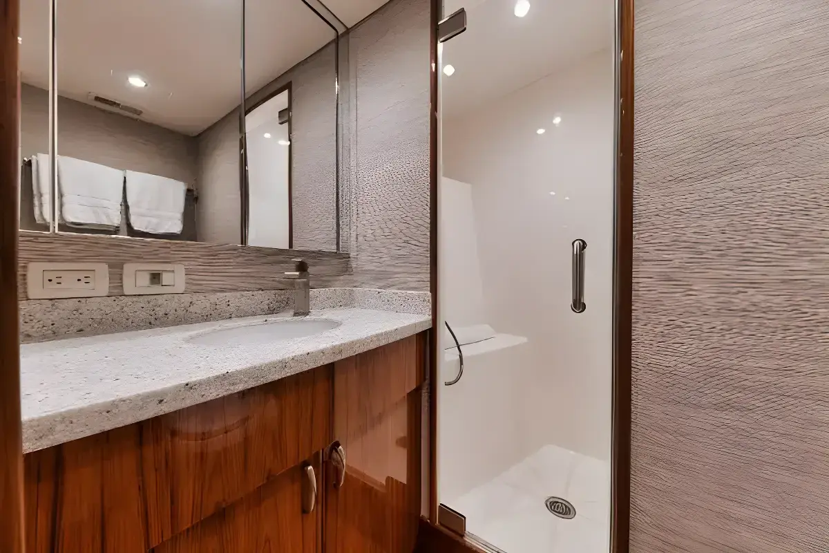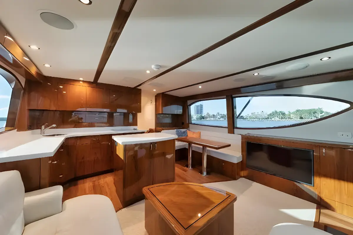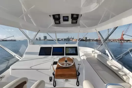 She is sure to stand out offshore with her flawless styling and quality construction. The current owners of this 54GT invested in creating and maintaining a top-of-the-line vessel from upgraded engines currently under warranty, all services being current and up to date, and high-grade furnishings.