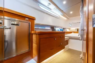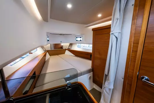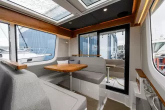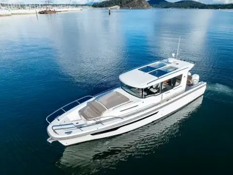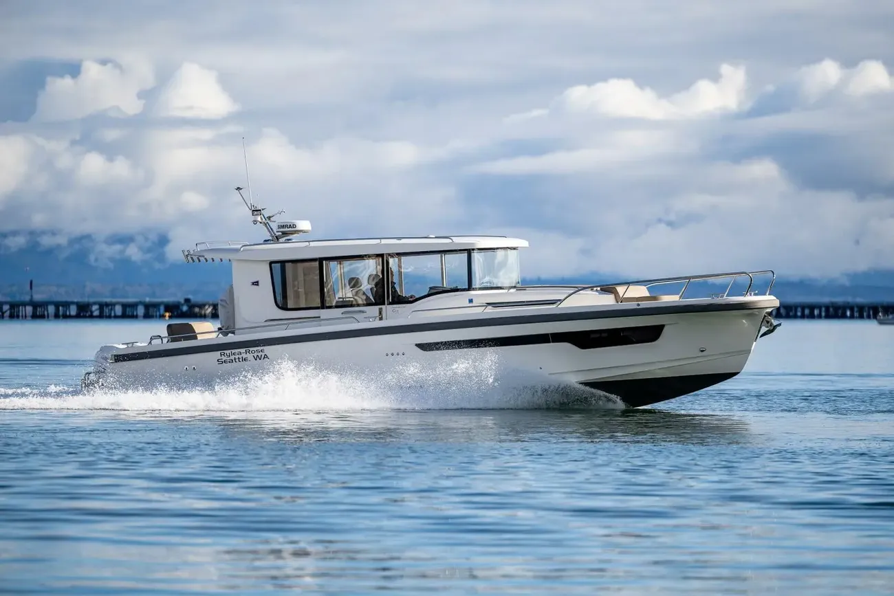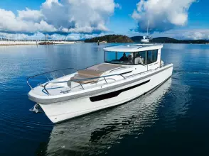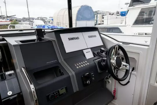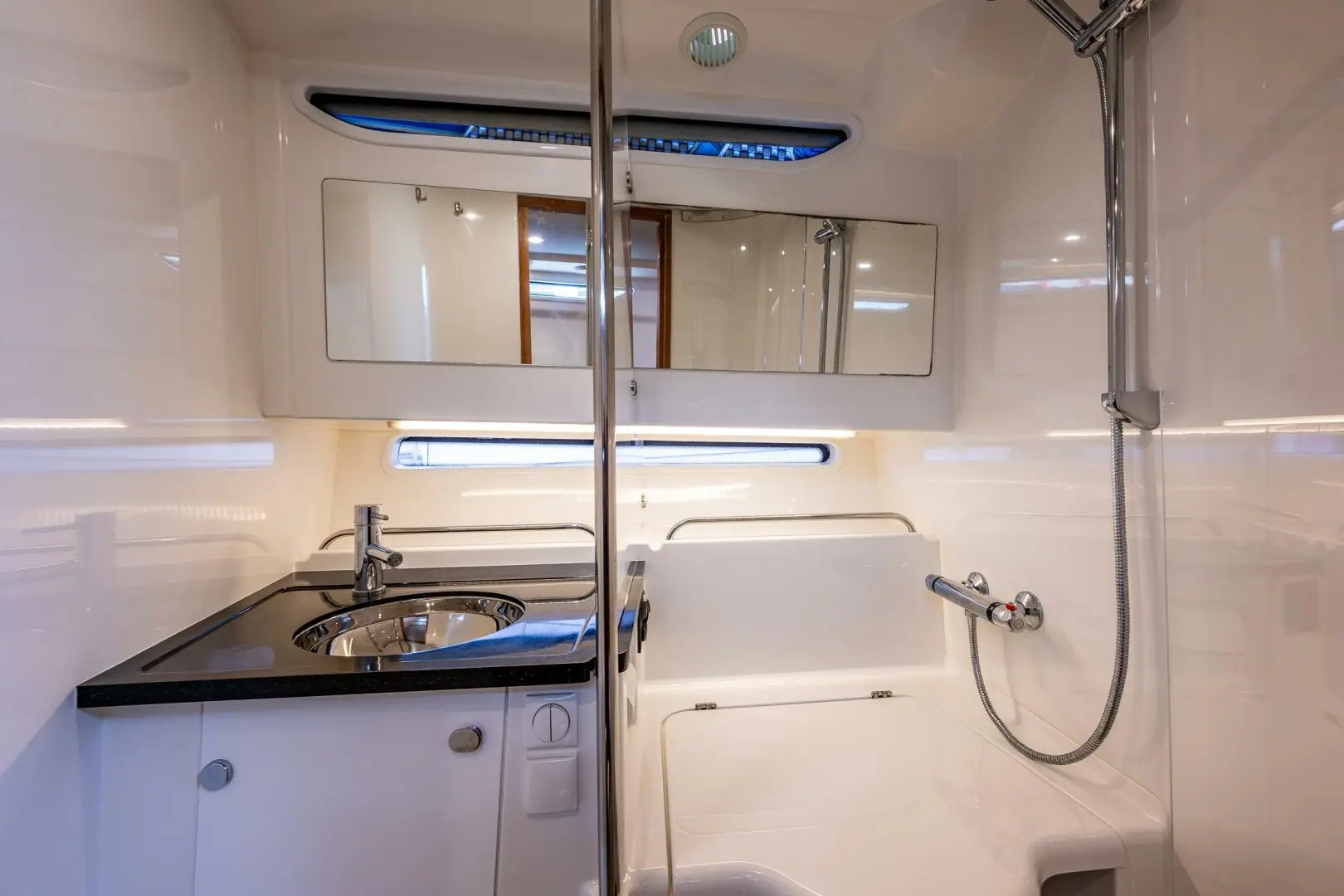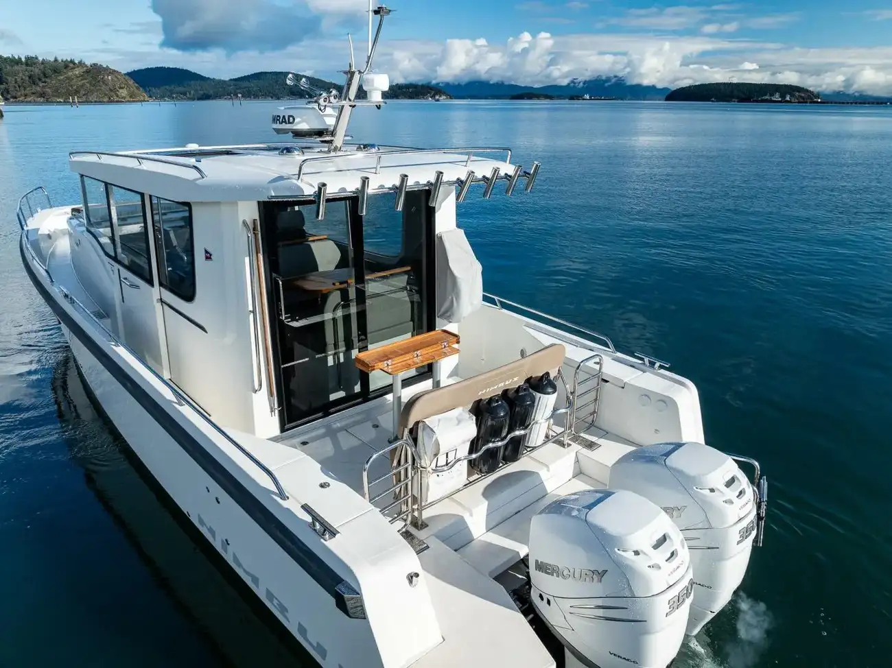 The Nimbus C-11 was designed to be all-purpose, rugged, fast, yet comfortable enough to be your normal day-to-day cruise. The C11 is a perfect vessel for the daily boater who uses the water as their method of transportation all year round, no matter the season. The pilothouse sets this model apart from most other boats in its class. There are shock mitigating helm seats as well as a passenger sofa all enclosed in a brilliant cabin with large windows. It even has an indoor galley and separate shower and head. There is seating in the bow as well as a sunpad for owners that use the C-11 as a pleasure boat along with plenty of room on both sides of the pilothouse to walk around with ease. In addition to the bow cabin, the C-11 also has a mid cabin with a double bed.