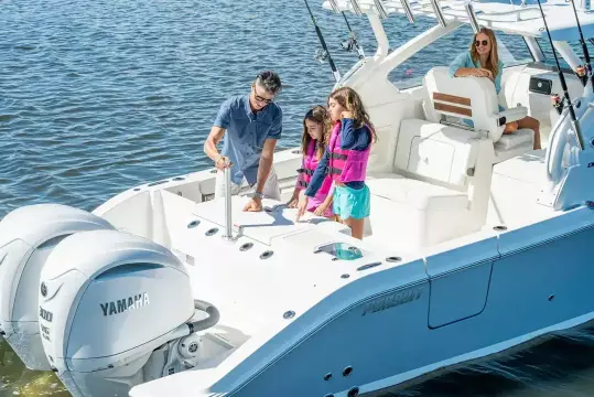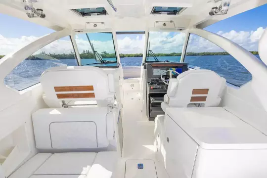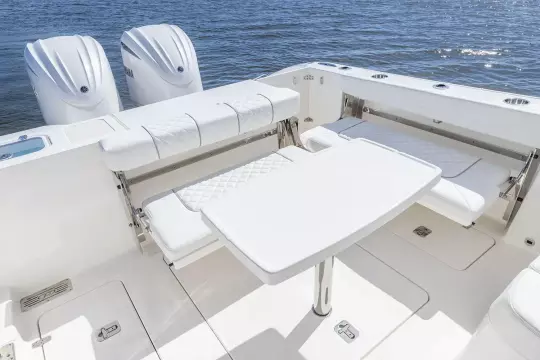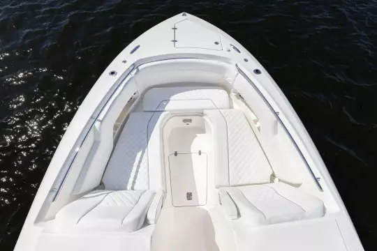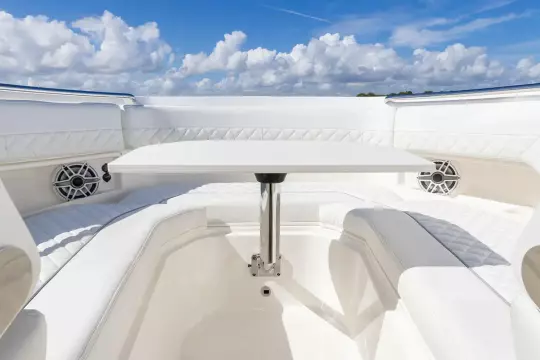 The forward bow seating is perfect for lounging when the weather is right, or you can enjoy the protection of the full windshield hardtop system to escape the elements. The wide-open layout is built around sport utility, allowing you to fish, cruise, dive and entertain in a Pursuit that sets the standard for the category.