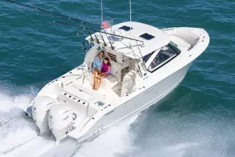 The Pursuit DC 306 builds on the reputation of one of the brand’s most popular Dual Consoles, the DC 295. An integrated hardtop, crystal–clear tempered windshield, convertible seating arrangements and item-specific storage are a few of the highlights in our latest luxury dual console boat.