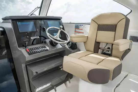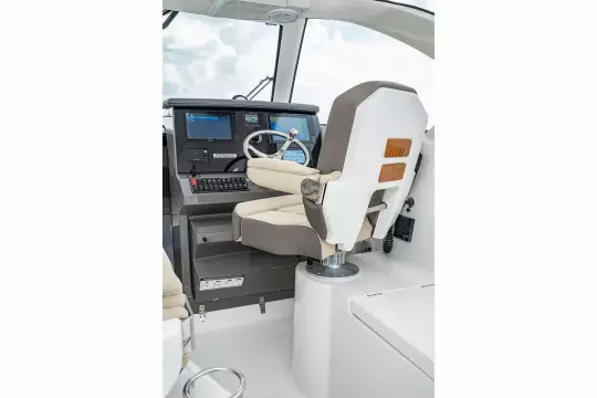 • Triple Yamaha F350 V6 Offshore (Pearlescent White) w/Integrated Digital Electric Steering (DES) and Helm Master EX Digital Electronic Control (DEC) and Yamaha Joystick Control with Full Maneuverability (Set Point and Autopilot) and Multifunction Display Interface