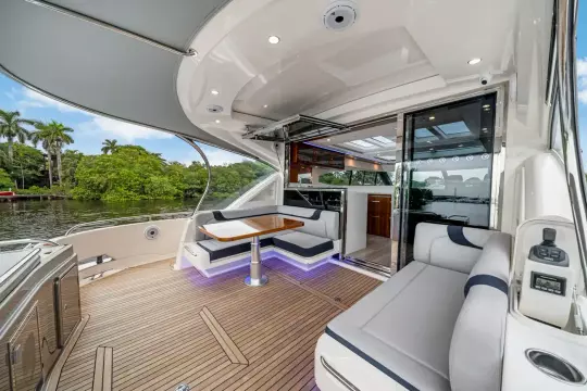 - Upholstery upgrade to cockpit lounge and foredeck sun pad - Sunbrella