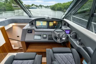 - Twin Volvo IPS 950 D11 Diesel (533kw/725hp) twin lever controls (helm) & 3 x joystick control to helm & cockpit (port & stbd side), DPS, Autopilot, ACP, 2 x 17'' Glass bridge MFD's & auto trim