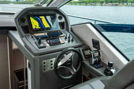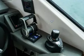 Upon request, an optional joystick can be added which allows enhanced maneuverability, this system, available for the first time on a Pershing, is called EASY DOCK and is the result of the consolidated technological partnership between Pershing and Top System. The EASY DOCK system will be exclusively available on the new coupé and further development of the system is guaranteed.
