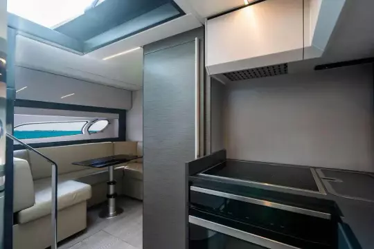 The 5X is the first Pershing below 60 feet where the owner can enjoy a full-beam master suite with an en-suite bathroom and a dinette in front of the galley.