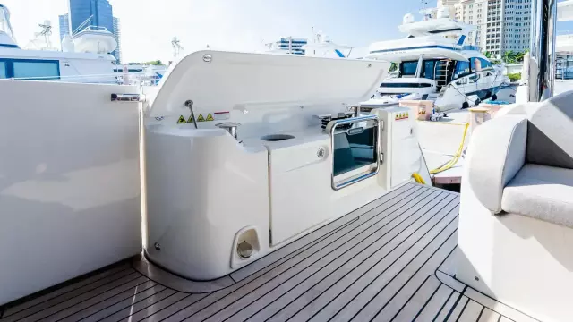 • Master stateroom safe, stereo and bow refrigerator