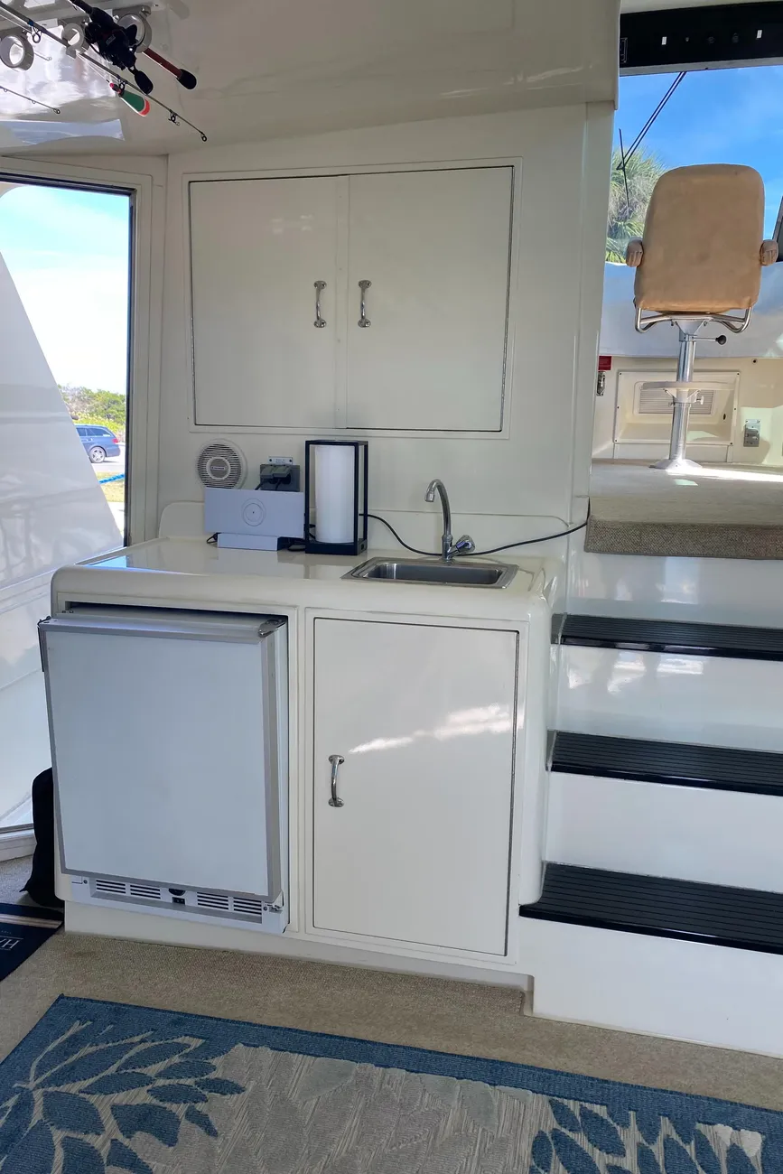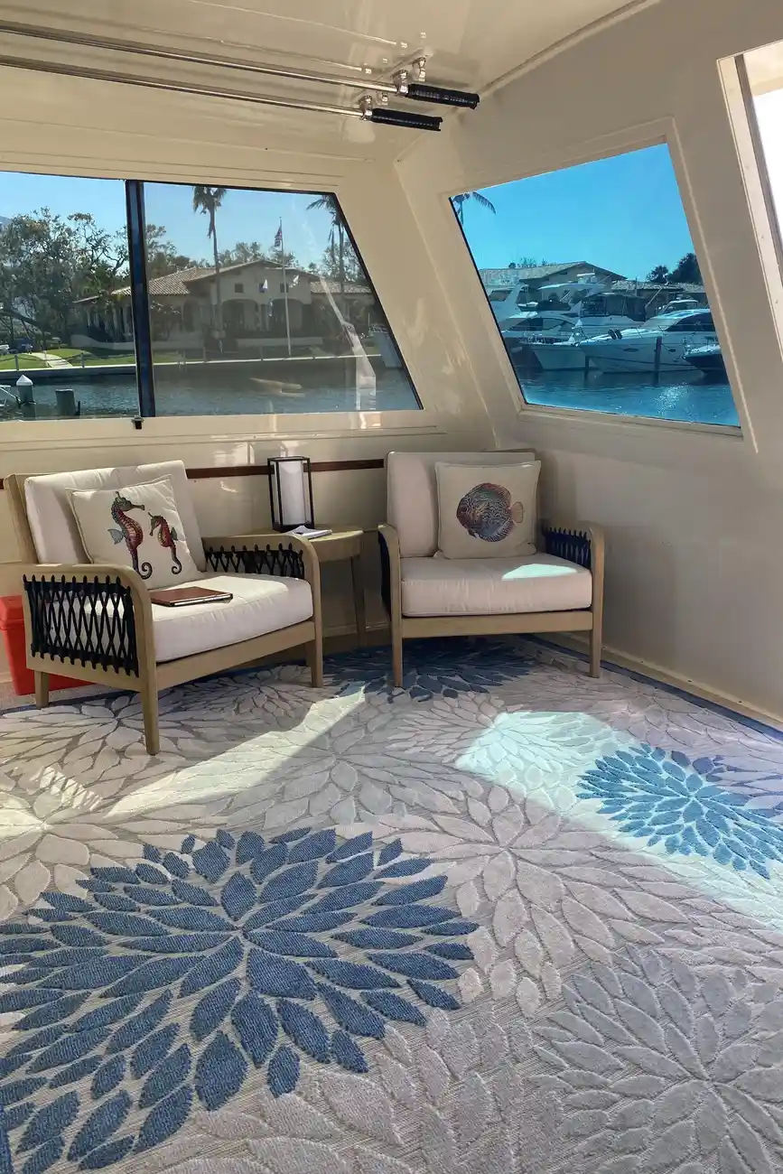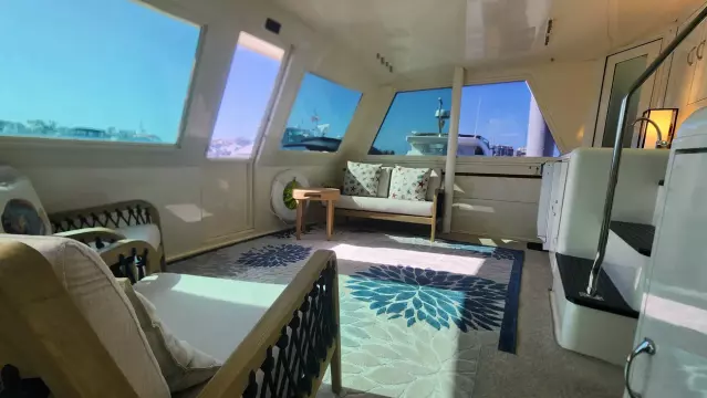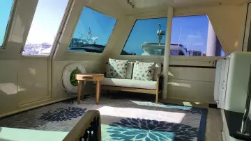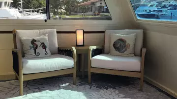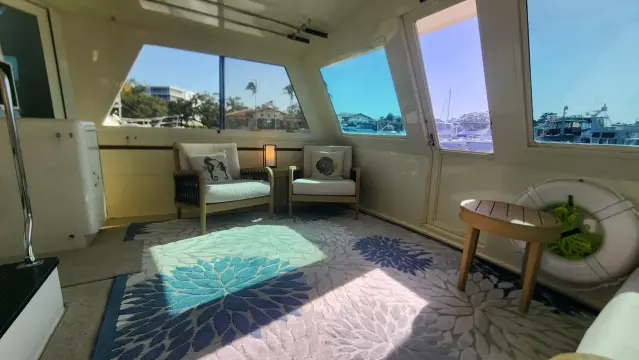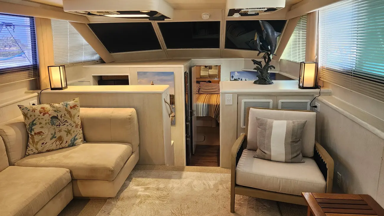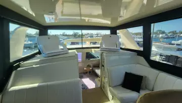 This boat has been treated with TLC its whole life. The interior is in excellent condition and has never been abused. The ash wood walls are all in excellent condition. There are no rips or tears in the wallpaper in the heads or staterooms. There is new teak and Holley laminate flooring in all three heads. All soft goods, bedding, dishes, and cutlery are new and of the highest quality. The rugs on the aft deck and main salon are also new.