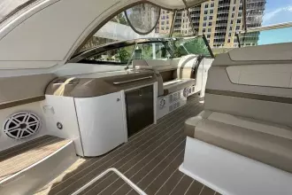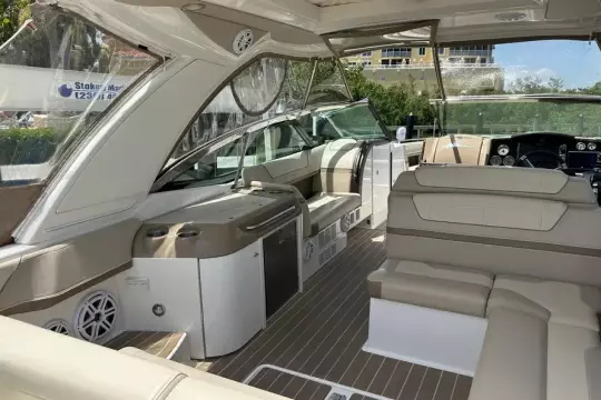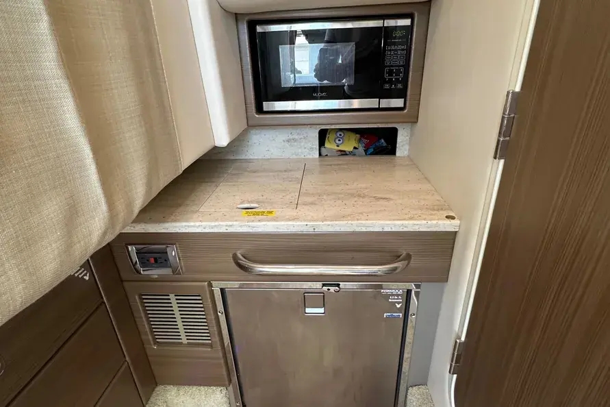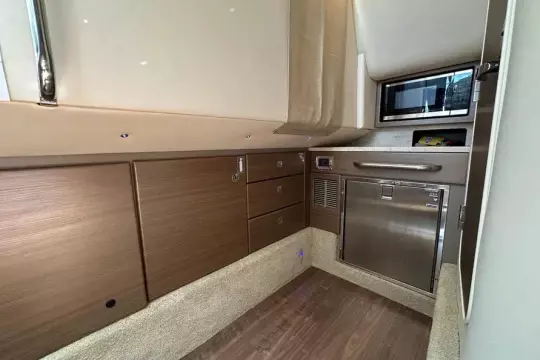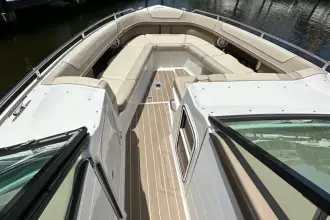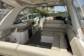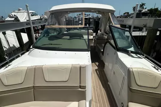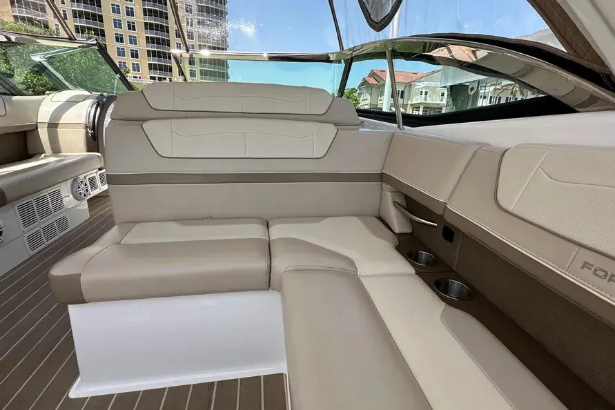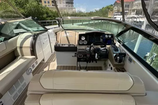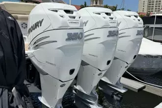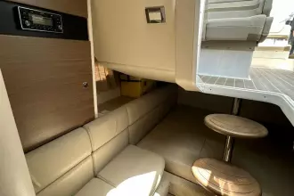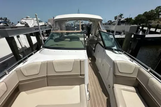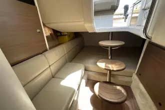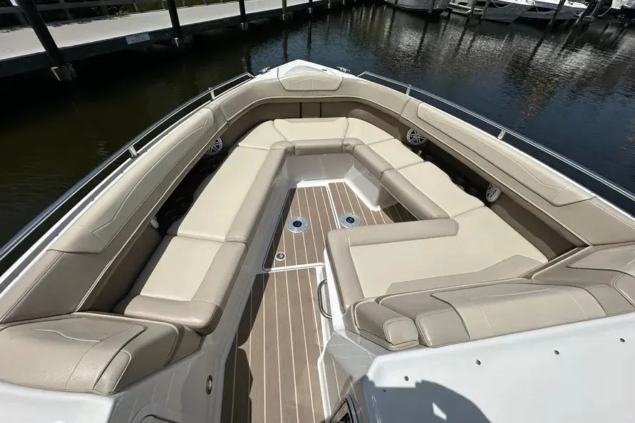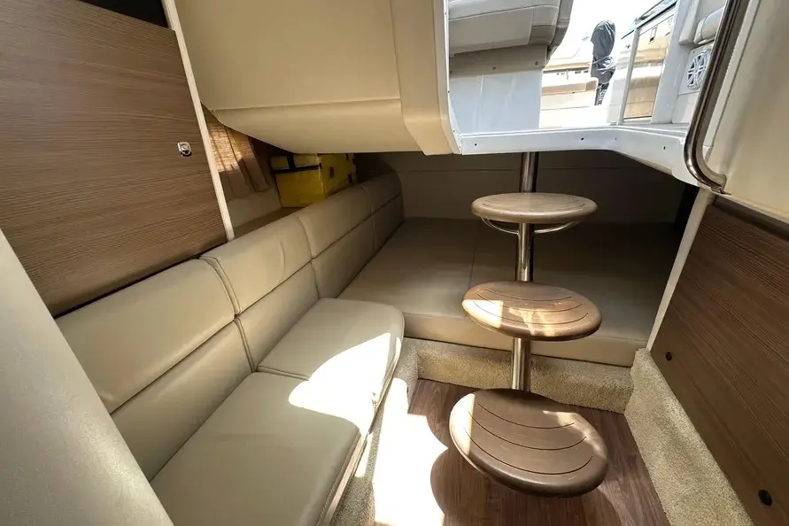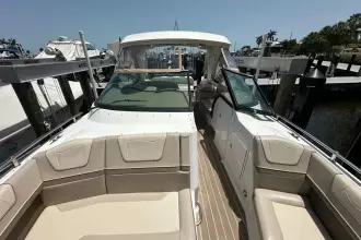 Powered by twin outboards (exact model/specs to be confirmed), she delivers spirited performance while offering the amenities of a more expansive cruiser. Her smart design includes a well-laid-out cockpit, comfortable seating configurations, and clever storage solutions that make every outing effortless.