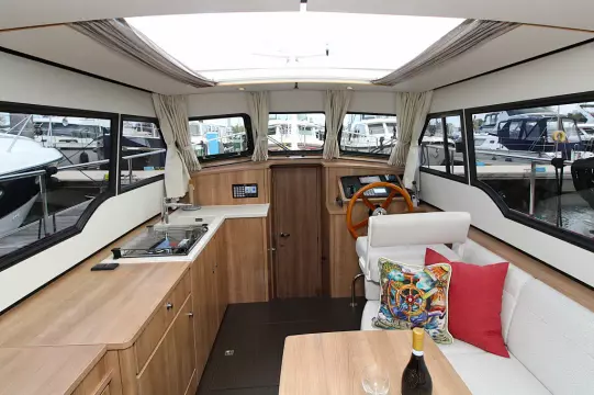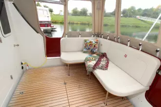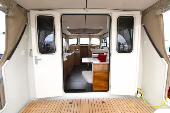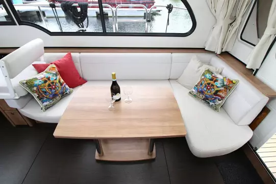 Indeling: De boot biedt een slimme en comfortabele indeling met een ruime salon, kombuis, een royale eigenaarshut en een separate douche en toilet. Dankzij het doordachte ontwerp geniet u van veel leefruimte en opbergruimte.