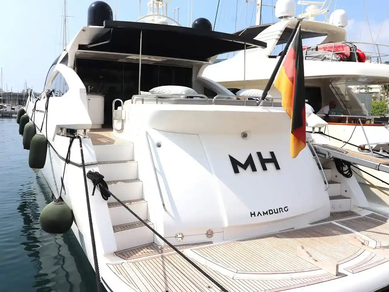 The Sunseeker Predatoris the perfect expression of performance woven with luxury. With her 24.9 m of sleek profile, she commands respect on the water. From her two MTU engines ( ~1950hp each) to her advanced stabilisation, she’s built to deliver both exhilarating power and composed cruising.