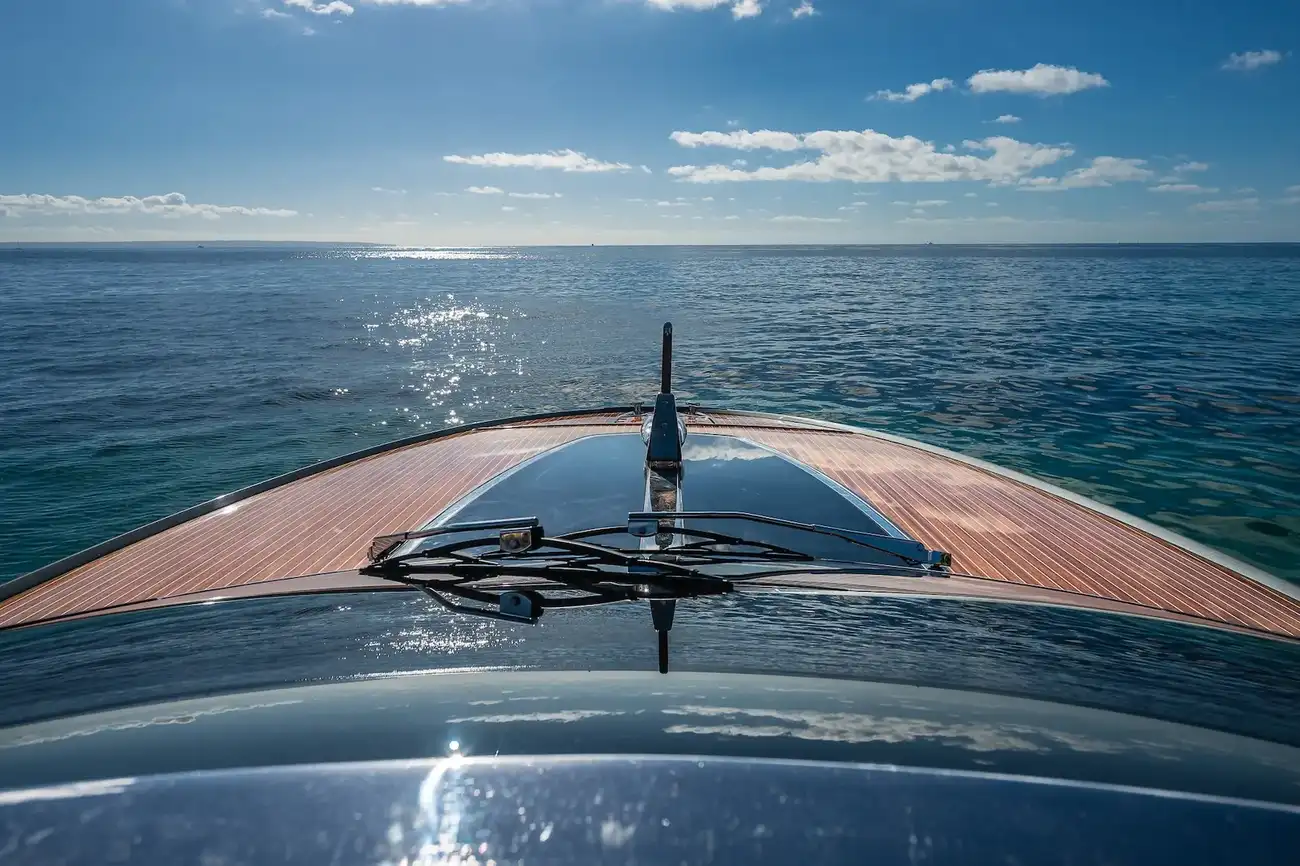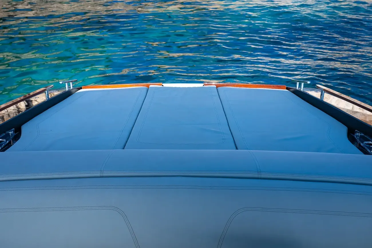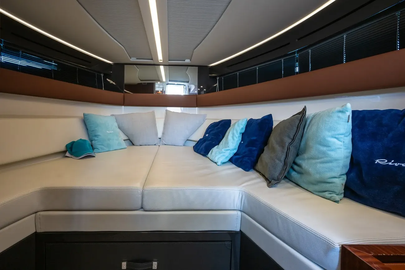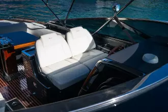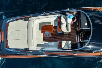 M/Y 69 OF PORTALS is a superb Riva 38 Rivamare, powered by twin VOLVO D6 engines (400hp each) and maintained in excellent condition with regular servicing. Finished in elegant Riva Metallic London Grey, she features luxurious mahogany gloss flooring in the cockpit and bow area, paired with matching mahogany gloss furniture. With only one careful owner since new, she includes a custom Riva winter cover for optimal off-season protection. This Rivamare blends classic Italian design with modern performance, offering smooth cruising, comfort, and style—perfect for day trips or coastal cruising. Ready for immediate enjoyment.EQUIPMENT Riva Metallic London Grey paint Mahogany gloss flooring in cockpit and bow areas Mahogany gloss furniture on lower deck Generator 6Kw 50Hz AirConditioning AutoTrim system Navigation System with Joystick Driving System Integrated AutoPilot Bow thruster Seakeeper NG6 White underwater lights in stern and sides Magnum bottle instant chiller TV in saloon Microwave, sink and fridge on galley Electric toilet Electric openable beach area astern Bathing ladder on beach area Seabob Storage Electric openable bimini top Riva winter cover