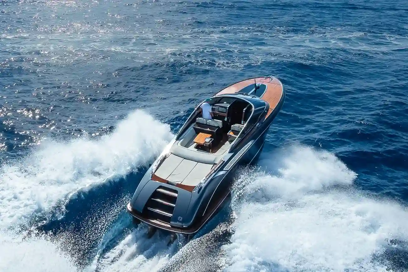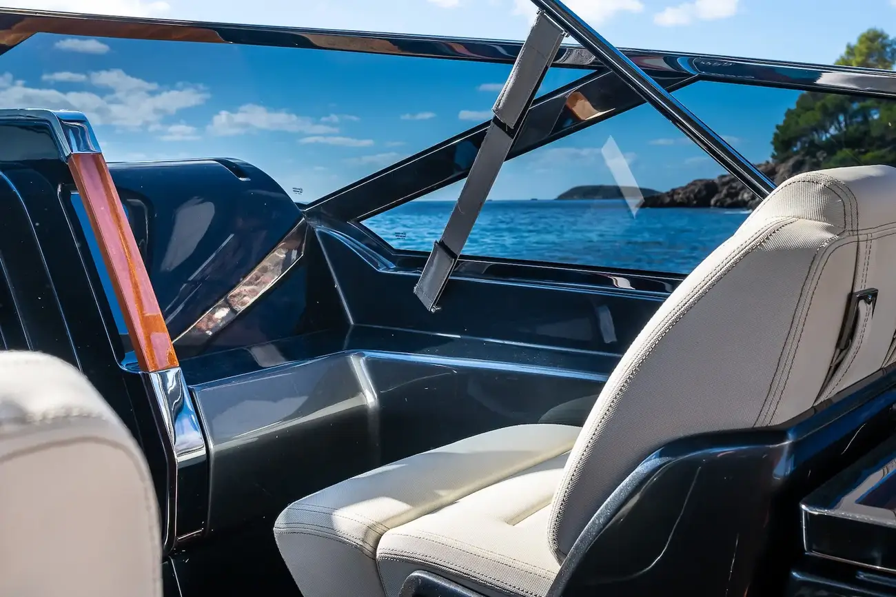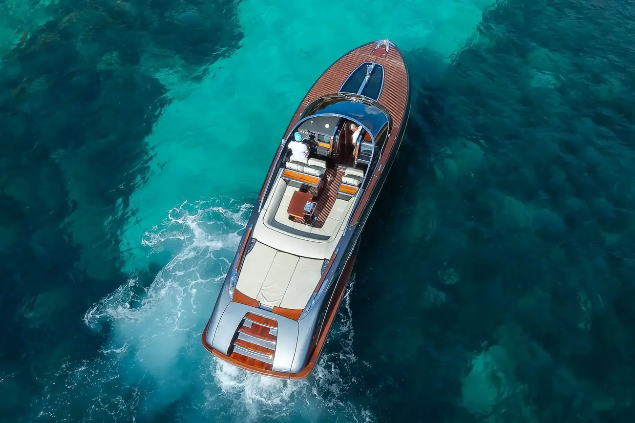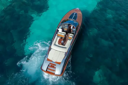 M/Y 69 OF PORTALS is a superb Riva 38 Rivamare, powered by twin VOLVO D6 engines (400hp each) and maintained in excellent condition with regular servicing. Finished in elegant Riva Metallic London Grey, she features luxurious mahogany gloss flooring in the cockpit and bow area, paired with matching mahogany gloss furniture. With only one careful owner since new, she includes a custom Riva winter cover for optimal off-season protection. This Rivamare blends classic Italian design with modern performance, offering smooth cruising, comfort, and style—perfect for day trips or coastal cruising. Ready for immediate enjoyment.EQUIPMENT Riva Metallic London Grey paint Mahogany gloss flooring in cockpit and bow areas Mahogany gloss furniture on lower deck Generator 6Kw 50Hz AirConditioning AutoTrim system Navigation System with Joystick Driving System Integrated AutoPilot Bow thruster Seakeeper NG6 White underwater lights in stern and sides Magnum bottle instant chiller TV in saloon Microwave, sink and fridge on galley Electric toilet Electric openable beach area astern Bathing ladder on beach area Seabob Storage Electric openable bimini top Riva winter cover
