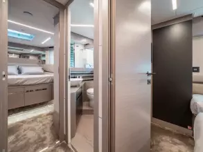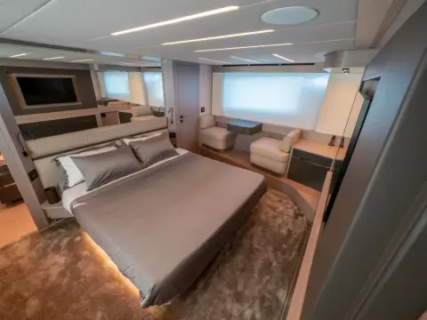 Sleek yet imposing, the Pershing 8X commands attention on the open waters with its aerodynamic profile and muscular stature. Twin 2,638 horsepower engines propel this Italian thoroughbred to a blistering 48 knots so that the sea itself blurs to abstraction. Step inside to find exquisitely stitched leather, carbon fibre trim and a hi-tech entertainment suite framed by expansive windows. With a range of over 300 nautical miles between refuelling, the possibilities for adventure are endless aboard this pinnacle of luxury and performance. Both a paddock and a palace, the 8X realises fantasies on every horizon. BROKER COMMENTS: "in immaculate condition, a 'must-see' yacht, fully serviced and crew maintained. Performance and Precision, this is what M/Y SURVIVOR offers in abundance."Optional list Engines: 2x MTU 2638 HP ET3 compliant + Top System TS100 4 Cabin layout Fully equipped with an extensive list of extras Under Pershing shipyard warranty until April 2024 MTU engines under warranty until April 2027 MCA Compliant Gyro Stabilizer Seakeeper Easy Dock for surface drives Dynamic Position System SD Hydraulic stern thruster 31HP Full Simrad Navigation (monitor 24”) Control station on flybridge Mase IS 22 Generators Watermaker Idromar 180l/h upgrade TV SAT KVH TV6 Hull and Upper deck Metallic Silver paint Premium sound upgrade external Underwater lights Custom Sundeck dining area Sunshade awning with poles for upper sundeck Bimini at aft Extensive decoration upgrade Pullman bed in starboard guest cabin Twin beds (sliding) in guest cabin Wood different from standard Different floors from standard Custom game table in salon Exterior custom table at aft Exterior custom table at bow Custom seating area in Master Cabin Tender Williams 345 Sportjet DISCLAIMER: The Company offers the details of this vessel in good faith but cannot guarantee or warrant the accuracy of this information nor warrant the condition of the vessel. A buyer should instruct his agents, or his surveyors, to investigate such details as the buyer desires validated. This vessel is offered subject to prior sale, price change, or withdrawal without notice. EXENCIÓN DE RESPONSABILIDADES: La empresa ofrece los detalles de esta embarcación de buena fe, pero no puede garantizar la precisión de esta información ni garantizar la condición de la embarcación. Un comprador debe instruir a sus agentes, o a perito, para que investiguen los detalles que el comprador desee validar. Este barco se ofrece sujeto a estar disponible, cambio de precio o retiro sin previo aviso.