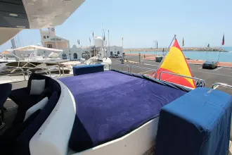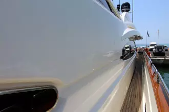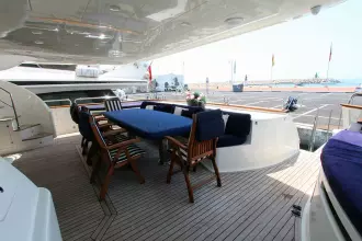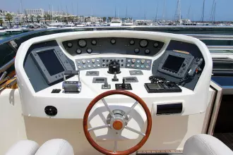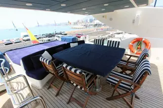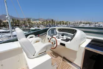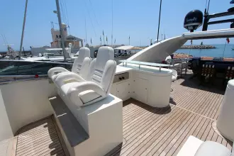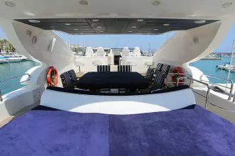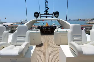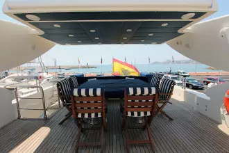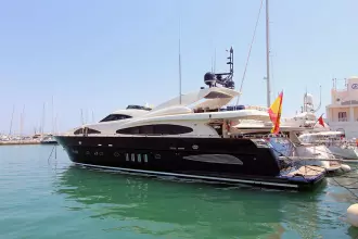 The Astondoa 102 M/Y MARIA JOSE motor yacht from the renowned Astondoa shipyard, built in 2005 as part of their GLX Series. With a length of 102 feet, this yacht offers a perfect blend of luxury, performance, and comfort. Designed for extended cruising, M/Y MARIA JOSE is equipped with stabilizers, ensuring a smooth and stable ride, even in more challenging sea conditions, and enhancing onboard comfort throughout your journey. The interior is equally impressive, featuring four spacious double ensuite cabins, each offering private, relaxing accommodations for guests. The carefully designed layout ensures plenty of room for everyone to unwind in style.NAVIGATION: Helm interior: Radar Raytheon RL-85-C 72 miles Plotter Raytheon Raychart 530 colour Automatic pilot Simrad Depthsounder Furuno FCV 612 colour Radio VHF Shipmate RS 8400 w/ DSC Compas Riviera de 100 with rosa Tridata Autohelm ST60 Wind Autohelm ST60 Rudder angle indicator Electronic engine controls Engine information displays Pantallas de motores CCTV with cameras in engine room and stern connected to displays/TV at both helms, galley, captain and main cabin Fly: Display for plotter Display for radar Automatic pilot Radio VHF Wind equippment Rudder angle indicator Open array radar antenna and GPS antenna 2 domes Epirb ACR satelite 2 STERN: 3rd control station for engines and thrusters in cockpit EQUIPMENT: Enyerior furniture in wood Wood / marble floor in hallways Air conditioning throughout 2 x Generators Kohler 33 KW (4995 y 5450 hours March 2021) Stabilizers Bow thruster hydraulic 35 hp Stern thruster electric Watermaker Idromar Fuel treatment Alfa Laval 2 safe box 380v / 220v shore power with automatic battery chargers 2 inverters 24v/3000W y 24V/5000w Black water tank system CO2 fire extinguisher in engine room Fire extinguishing water pumps Fresh water pumps 24v and 380v Grey water and black water pumps Saloon door electric EQUIPMENT EXTERIOR: Teak flooring on swim platform, main deck and fly Hydraulic pasarelle 2 anchor winches with 14mm 110m chain and anchors 2 stern mooring winches Wet bar on fly with 2 grills, 3 fridges and sink Hard top Garage on bow gydraulic opening and crane for tender Tender Zodiac Projet 420 Garage at stern with Yamaha jet ski Hydraulic swim ladder 2 Liferafts 16p AUDIO VISUAL: Satelite TV antenna Tracvision KVH Flat screen TV in saloon with electric raising system DVD / CD sound system with speakers in saloon TV flat screen in 4 guest cabins, TV room, galley and captain cabin Sound system radio CD with speakers in saloon, cabins, galley, helm and fly DOMESTIC: Ceramic cooker Oven Micro wave oven 3 fridges Freezer Wine cooler Dishwasher Double sink Washing machine and drier separate units Ice maker in cockpit and fly NOTE: The name of boat to be retained by owner when sold. Private objects, crockery, paintings etc and stern projector not included.