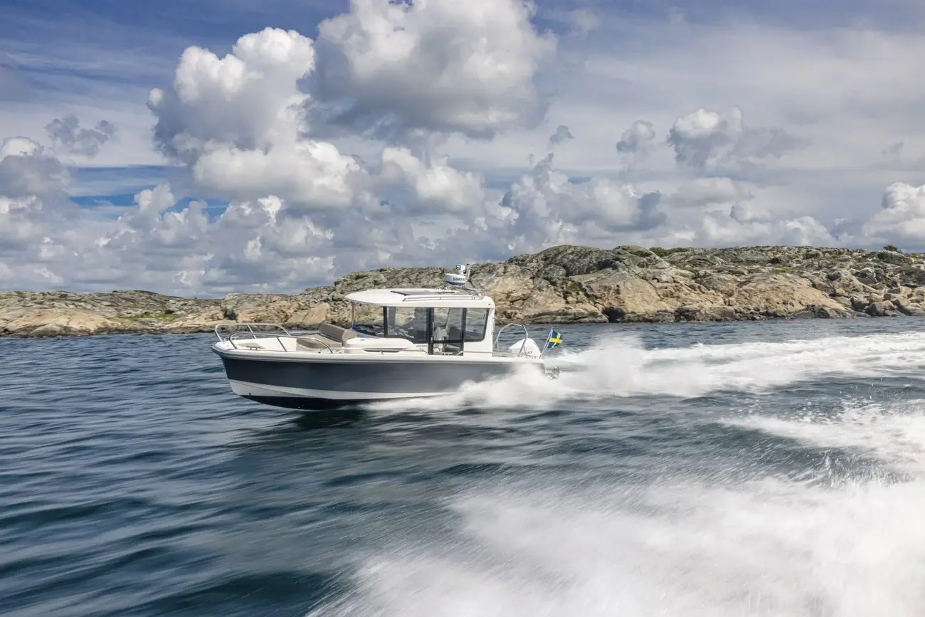The C8 is the third in the Nimbus Commuter series following the latest C9 and C11 models. The C8 is a purpose-built, rapid commuter vessel, constructed to equally meet the needs of year-round commuters, active day-trippers or those planning shorter, staged journeys with overnight stays. Like its siblings the C8 has a wide walk-around design which contributes to extra freedom and makes it easy to move around onboard.