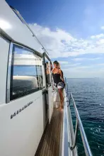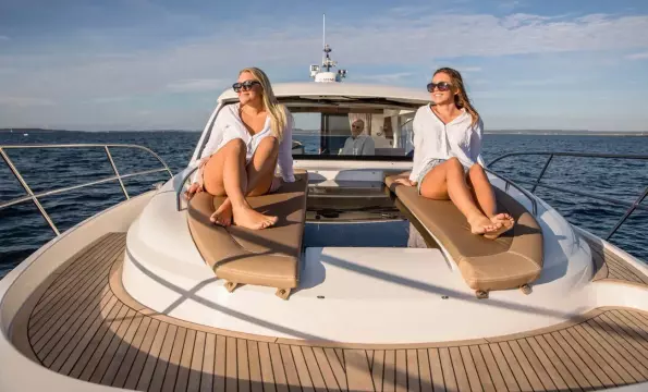 - Aft deck table convertible to a sunbed