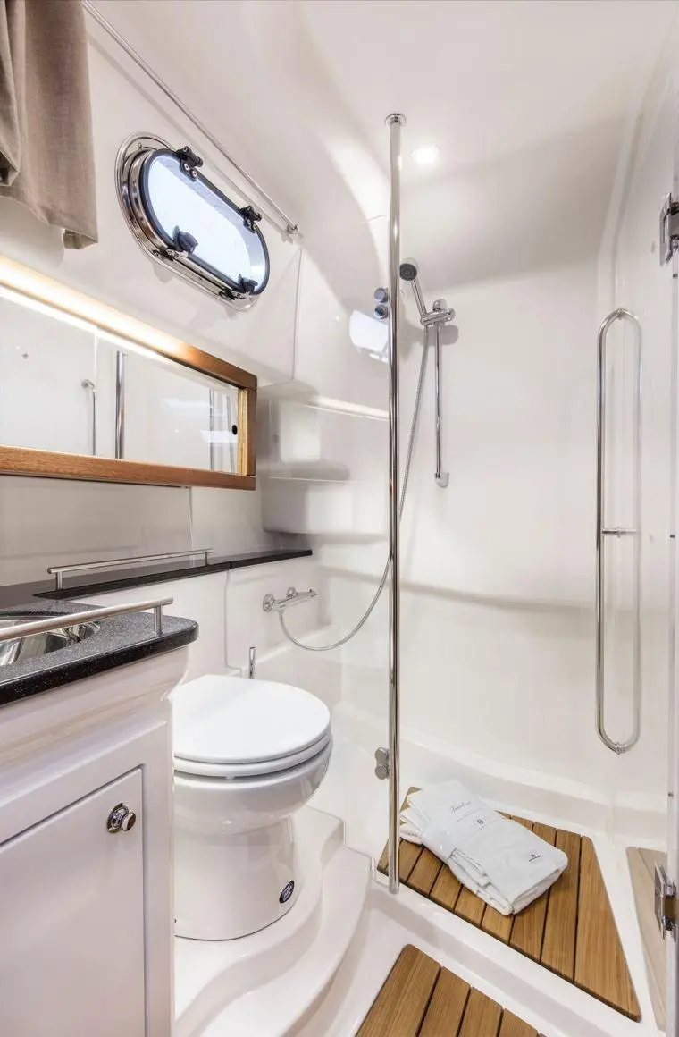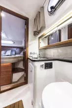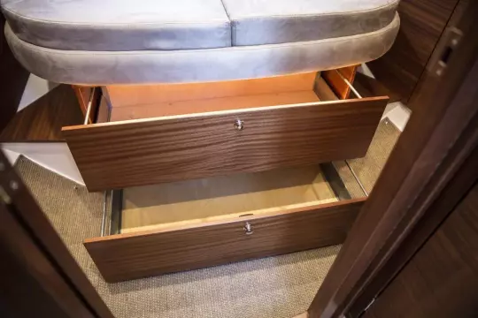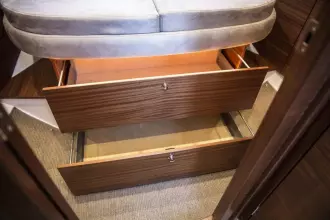 The new modular galley provides more storage space and a wider range of opportunities to meet individual requirement. Options include gas, electric or induction hob, oven or microwave; extra cool box (36 liters), freezer or extra storage lockers. A kitchen fan and extra overhead lockers are also available as an option.